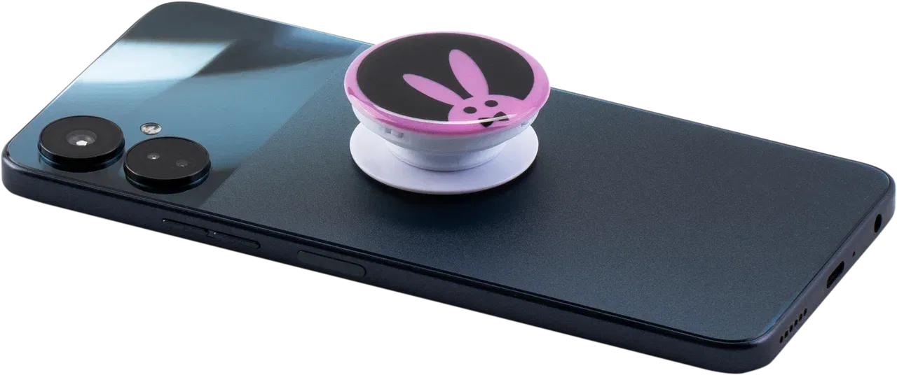Держатель для смартфонов с логотипом Розового Кролика позволит Вам сделать свое устройство более функциональным. С держателем телефон можно будет расположить под наклоном для большего удобства во время просмотра видео или серфинга в интернете. Вокруг него очень просто зафиксировать наушники, чтобы они не спутывались и не мешались. Делать селфи и видео с ним также будет проще, ведь больше не придется целиком обхватывать корпус рукой. Кроме того, попсокет с кроликом - это еще и стильный аксессуар, который украсит собой Ваш девайс.