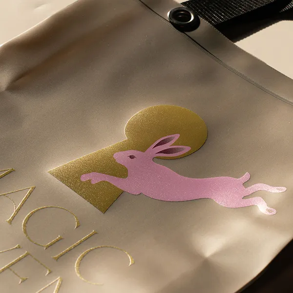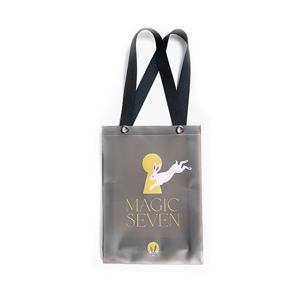 Сумка-шоппер PinkRabbit из ПВХ с принтом, намекающим на нашу новую коллекцию игрушек Magic Seven. Стильный аксессуар с которым можно ходить за покупками не только в "Розовый кролик"!