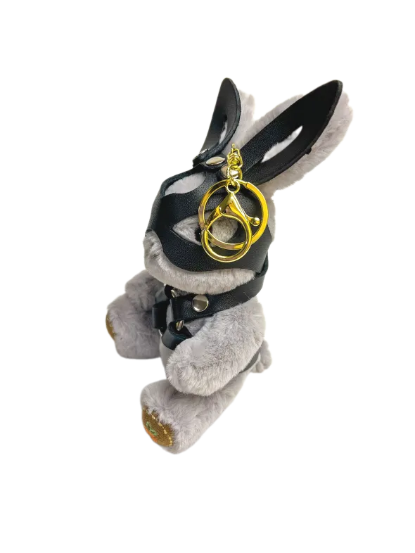Таинственный зайчик в маске удивит и намекнет на темпераментность дарителя. Снаружи брутальный, а внутри нежный пушистик точно понравится Вашей зайке))) Игрушка оснащена карабином и кольцом, её можно носить в качестве брелока на ключах или сумке. Высота зайчика 18 см, очень удобный размер. Костюмчик выполнен из натуральной кожи.