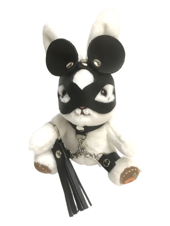 Хитрый зайчик в маске мышки с плетью – забавный и оригинальный аксессуар для любителей БДСМ и для всех страстных неординарных натур. Плеть снимается и может служить отдельным аксессуаром, например, украсит ключ от машины. Игрушка оснащена карабином и кольцом, её можно носить в качестве брелока на ключах или сумке. Высота зайчика 18 см, очень удобный размер. Костюмчик выполнен из натуральной кожи.