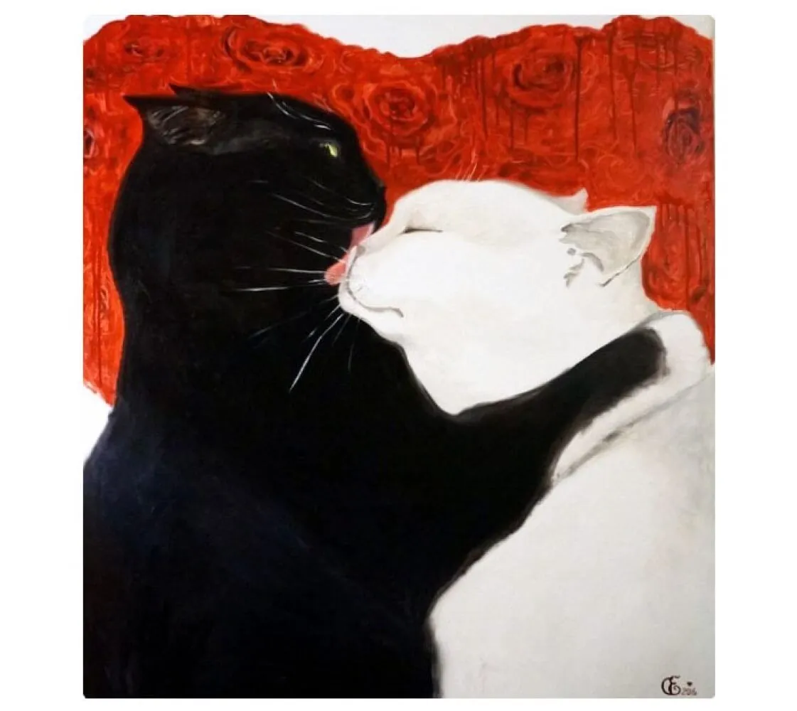 Красивый магнит с изображением черного и белого котиков, милующихся друг с другом, напомнит Вам о самом важном - о любви и нежности. Оригинальное полотно принадлежит кисти художницы Гришаевой Елены, которая сумела вложить в эту картину чувства привязанности и заботы. Магнит сможет стать отличным сувениром для Ваших друзей, коллег и родных, который украсит их дом или офис.