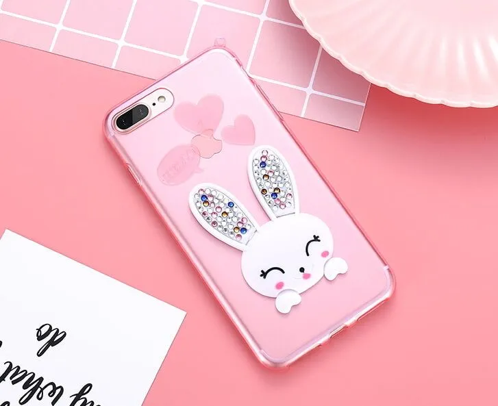 Чехол Зайчик со стразами на iPhone 6-6S, розовый