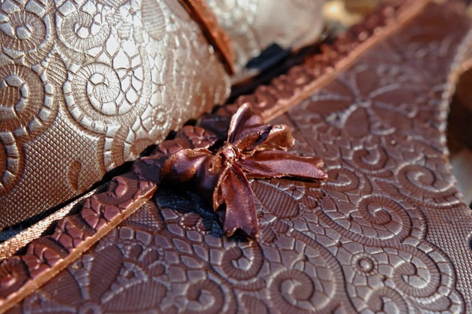 Необычный набор белья от бренда Lapin Rose состоит из бюстгальтера и трусиков, сделанных из темного шоколада. Белье украшено изысканным узором, вкусными оборочками и бантиком. Благодаря атласным ленточкам в тон комплекту это сладкое белье можно будет надеть на тело, чтобы поразить своего партнера во время романтической ночи. Что может быть более возбуждающим, чем возможность сорвать с любимой белье зубами и отведать шоколад, чей вкус и аромат пробудит страсть и вдохновит на чувственную интимную близость?