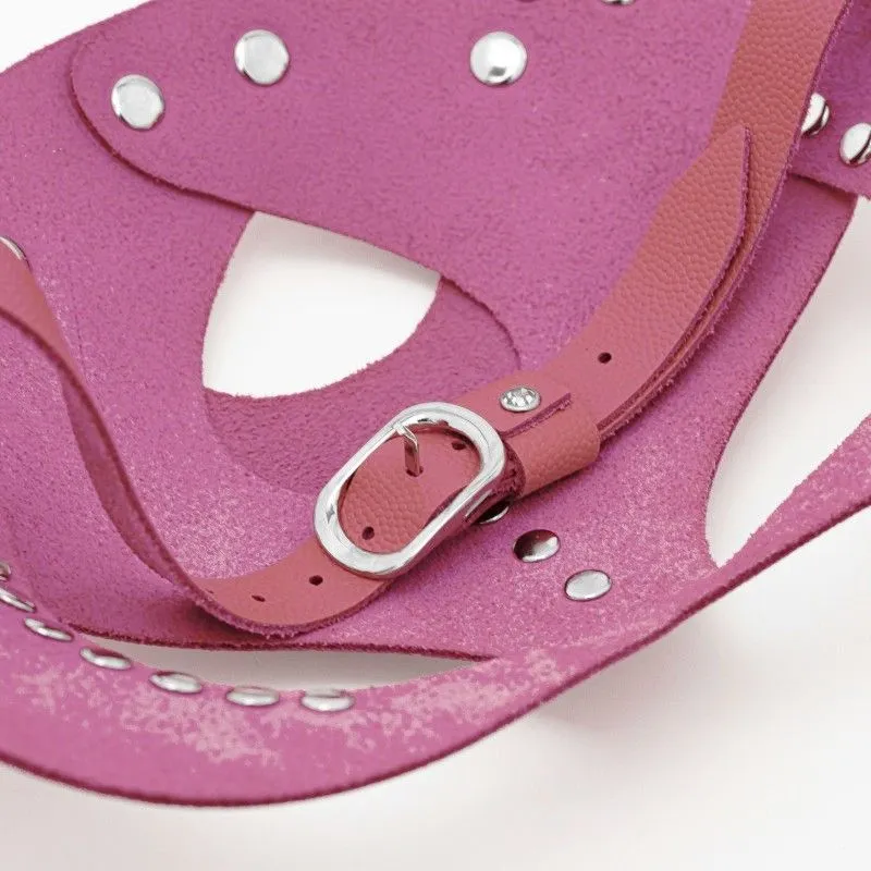 Изящная маска кошки из натуральной кожи розового цвета, украшена стразами. Надевая маску, мы можем дать свободу некоторым своим импульсам, можем их открыть партнёру. В этой маске вы почувствуете себя искусной соблазнительницей, грациозной сексуальной кошечкой и ваш романтический вечер плавно перейдёт в жаркую ночь. Кроме этого, маску можно использовать как карнавальную на различных мероприятиях. При помощи ремешка размер можно регулировать для комфортного ношения.