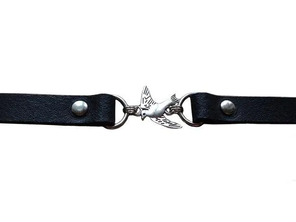 Подвеска на широком ремешке - это изысканный аксессуар, который всегда поможет Вам выглядеть эффектно и стильно. Подвеска выполнена в форме небольшой птички. Ремешок черного цвета с изысканной подвеской будет красиво смотреться на Вас, привлекая внимание к восхитительной шейке. Такое украшение именно то, что нужно, чтобы дополнить любой выбранный Вами образ.
