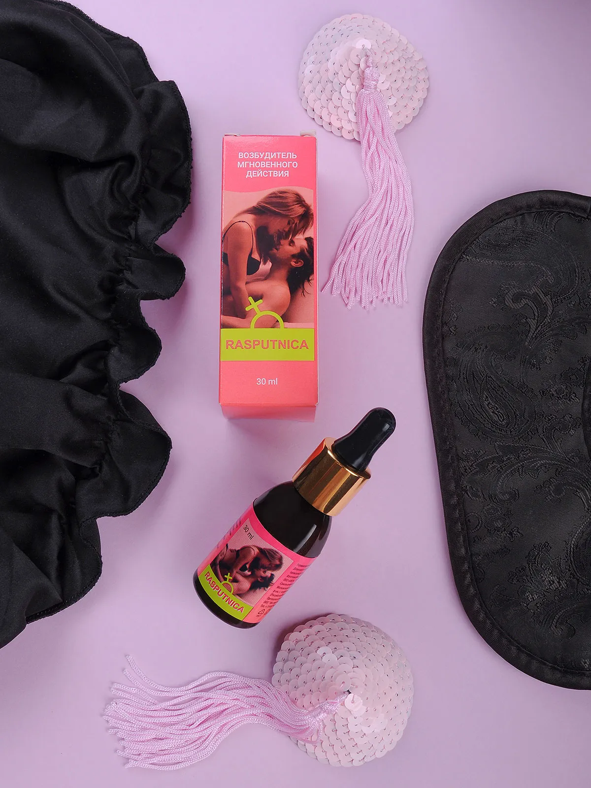 RASPUTNICA - возбуждающие капли, которые воздействуют на женский организм, тонизируют и пробуждают чувственность, усиливают чувствительность во время полового акта. Компоненты препарата вызывают у женщин мощное половое возбуждение, и усиливает влечение к мужчине. Состав: вода, регулятор кислотности лимонная кислота, L-аргинин, растительные экстракты (листьев зеленого чая, корней женьшеня, плодов гуараны, померанца, муира пуама, листьев грецкого ореха, цветков пижмы обыкновенной, листьев мяты перечной, травы лабазника вязолистного), консервант калия сорбат.Способ приготовления: 45 капель(3 мл) концентрированного напитка развести в 100-200 мл воды или любого безалкогольного напитка. Перемешать, дождаться полного растворения содержимого(1-2 минуты) и выпить за 30 минут до полового акта. Срок годности: 2 года с даты изготовления. Условия хранения: при температуре не выше 25°С. Допускается выпадение осадка растительного происхождения. Цвет: от светло-желтого до темно-коричневого. Запах: растительных экстрактов.