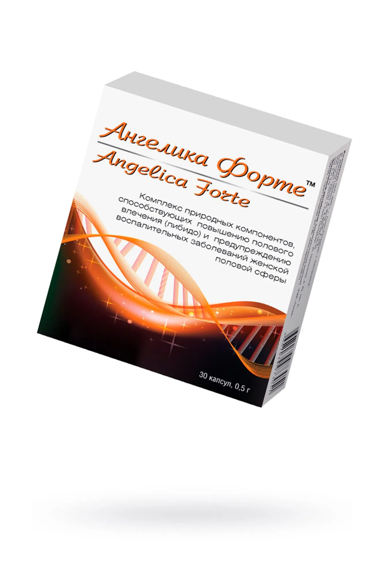 “Ангелика Форте™” поможет сохранить сексуальную активность – естественный способ надолго сохранить красоту и молодость. Проблемы на работе и в семье, постоянные стрессы, тяжелые физические нагрузки, хронические заболевания и многое другое приводит к снижению женского либидо. Но что делать, если вам совершенно не хочется интимной близости, и сексуальные ласки не доставляют вам никакого удовольствия? Эта проблема требует незамедлительного решения! Научные исследования доказали, что препараты на растительной основе могут вернуть женщине сексуальное влечение и решить многие сопутствующие проблемы, связанные со здоровьем в интимной сфере. “Ангелика Форте™” – это комплекс активных природных компонентов, которые способствуют увеличению сексуальной восприимчивости у женщин, обеспечивают высокую скорость начала действия, большую длительность эффекта и усиление оргастических ощущений, замедлению процессов старения и повышению жизненного тонуса, способствует профилактике воспалительных заболеваний мочеполовой системы. “Ангелика Форте™” способствует повышению либидо у женщин и рекомендуется женщинам в качестве источника йохимбина, витаминов С и Е. Рекомендации по применению: взрослым женщинам по 1 капсуле 2 раза в день во время еды. Продолжительность приема 4-6 недель. Состав: Экстракт ангелики, экстракт гуараны, экстракт астрагала, витамин С, витамин Е, экстракт йохимбе, королевское желе, микрокристаллическая целлюлоза, магния оксид Противопоказания: Индивидуальная непереносимость компонентов, беременность, кормление грудью, повышенная нервная возбудимость, артериальная гипо-/гипертензия, атеросклероз, выраженные нарушения функции печени и почек. Перед применением необходимо проконсультироваться с врачом. Форма выпуска: 30 капсул по 0,5 г БАД, НЕ ЯВЛЯЕТСЯ ЛЕКАРСТВОМ.