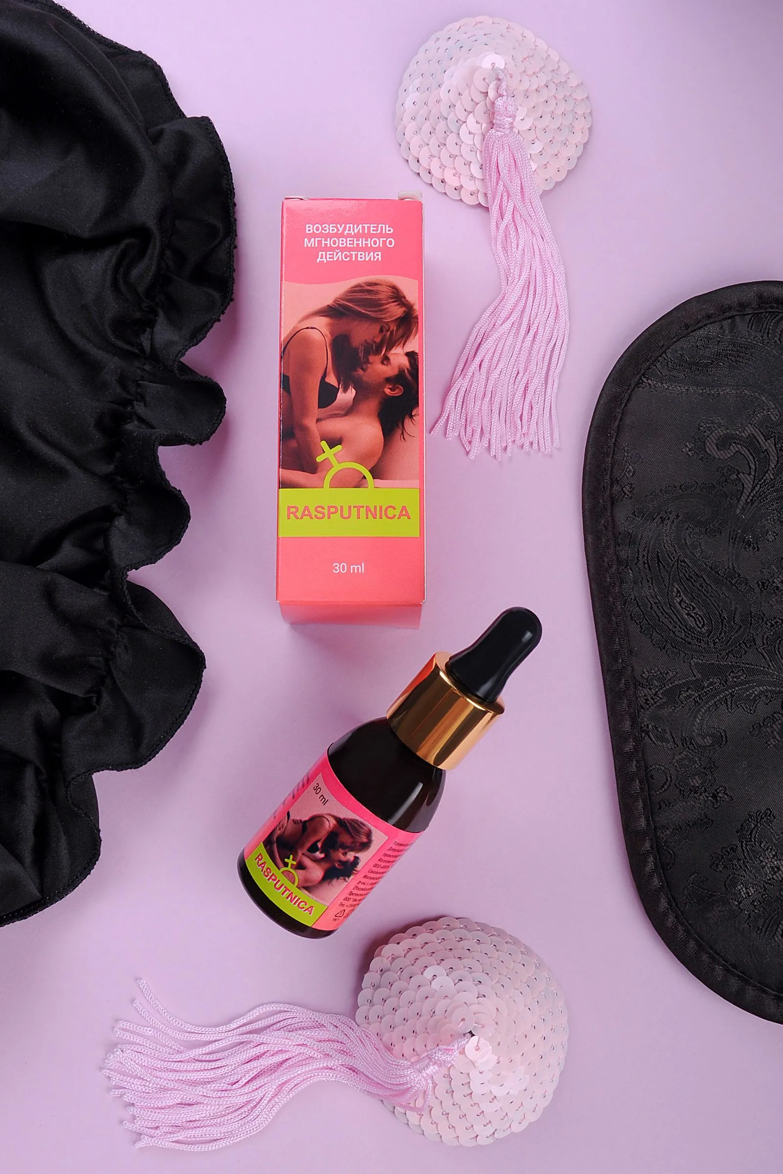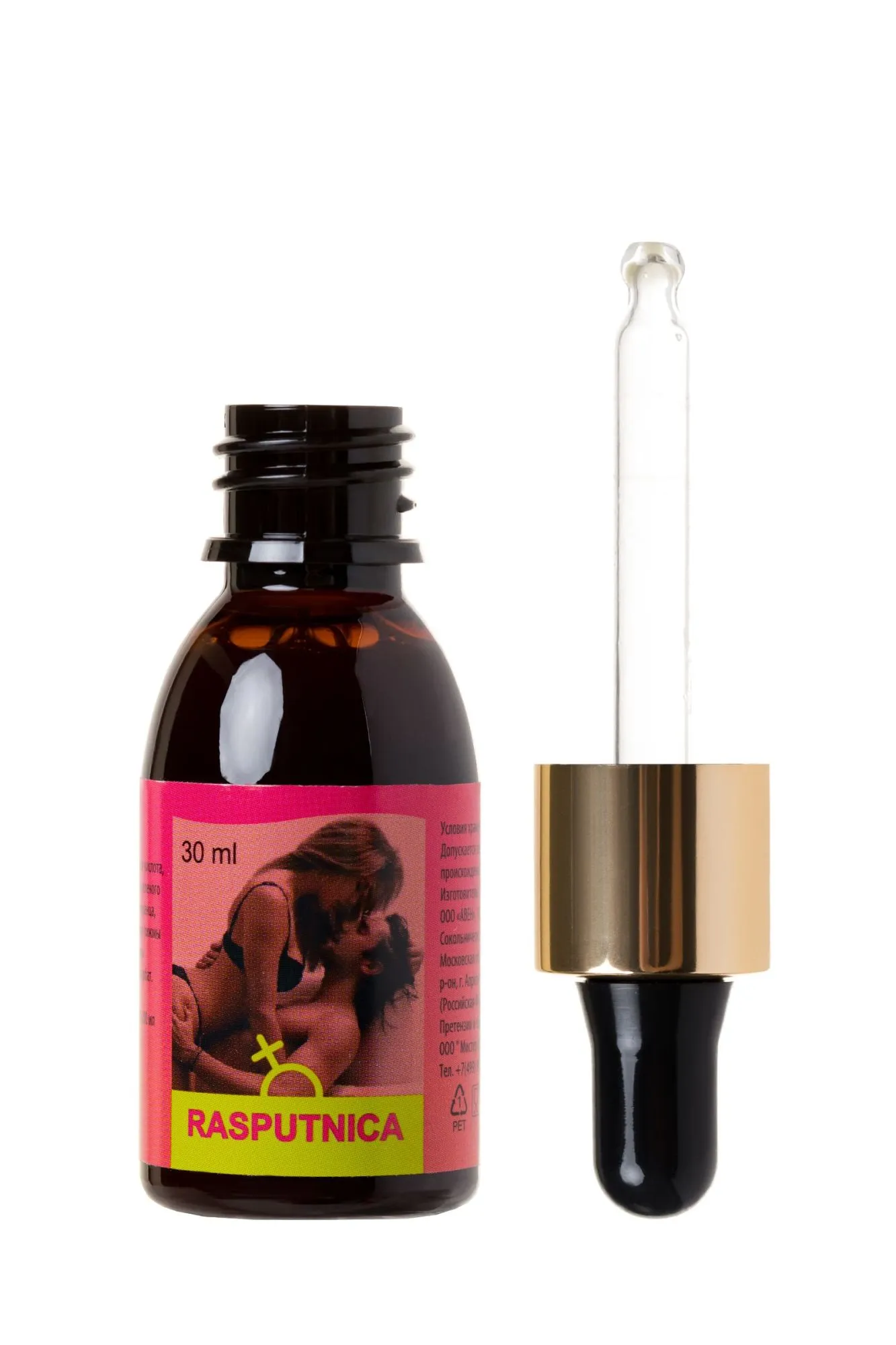 RASPUTNICA – возбуждающие капли, которые воздействуют на женский организм, тонизируют и пробуждают чувственность, усиливают чувствительность во время полового акта. Натуральные компоненты препарата вызывают у женщин мощное половое возбуждение, и усиливает влечение к мужчине. Помимо этого средство позволяет получить больше удовольствия от секса - L-аргинин и корень женьшеня стимулируют микроциркуляцию в области половых органов и обеспечивают приток крови к ним, что усиливает приятные ощущения и способствует достижению оргазма. Рекомендуется взрослым женщинам для повышение либидо и дополнительного возбуждения. Рекомендации по применению: 45 капель(3 мл) концентрированного напитка развести в 100-200 мл воды или любого безалкогольного напитка. Перемешать, дождаться полного растворения содержимого(1-2 минуты) и выпить за 30 минут до полового акта. Не принимать в вечернее время. Состав: вода, регулятор кислотности лимонная кислота, L-аргинин, растительные экстракты (листьев зеленого чая, корней женьшеня, плодов гуараны, померанца, муира пуама, листьев грецкого ореха, цветков пижмы обыкновенной, листьев мяты перечной, травы лабазника вязолистного), консервант калия сорбат. Противопоказания: Индивидуальная непереносимость компонентов. Форма выпуска: флакон-капельница 30 мл БАД, НЕ ЯВЛЯЕТСЯ ЛЕКАРСТВОМ.