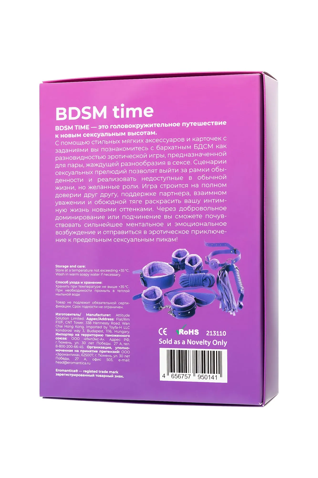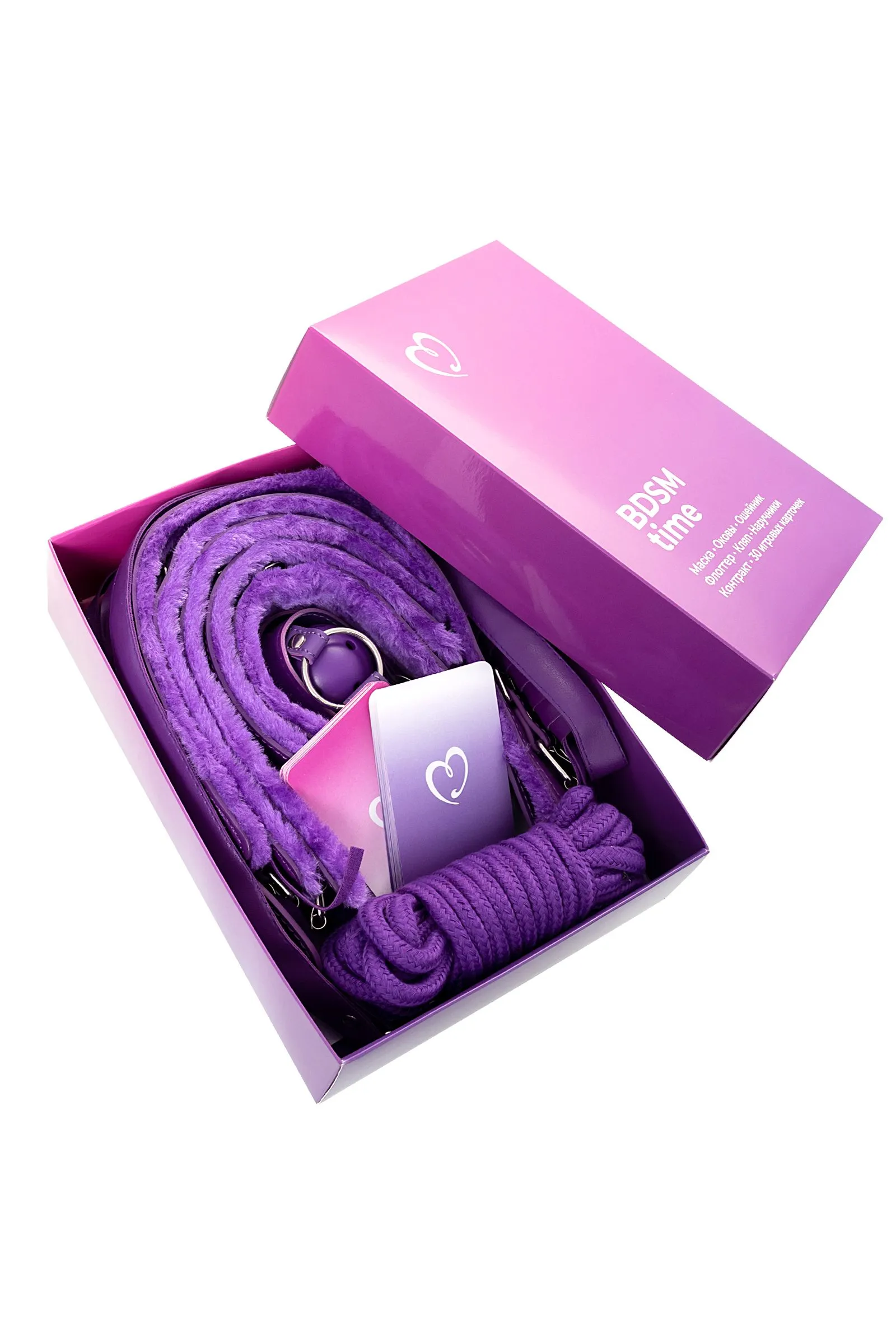 BDSM TIME – это головокружительное путешествие к новым сексуальным высотам. С помощью стильных мягких аксессуаров и карточек с заданиями вы познакомитесь с бархатным БДСМ как разновидностью эротической игры, предназначенной для пары, жаждущей разнообразия в сексе. Сценарии сексуальных прелюдий позволят выйти за рамки обыденности и реализовать недоступные в обычной жизни, но желанные роли. Игра строится на полном доверии друг другу, поддержке партнёра, взаимном уважении и обоюдной тяге раскрасить вашу интимную жизнь новыми красками. Через добровольное доминирование или подчинение вы сможете почувствовать сильнейшее ментальное и эмоциональное возбуждение и отправиться в эротическое приключение к предельным сексуальным пикам!