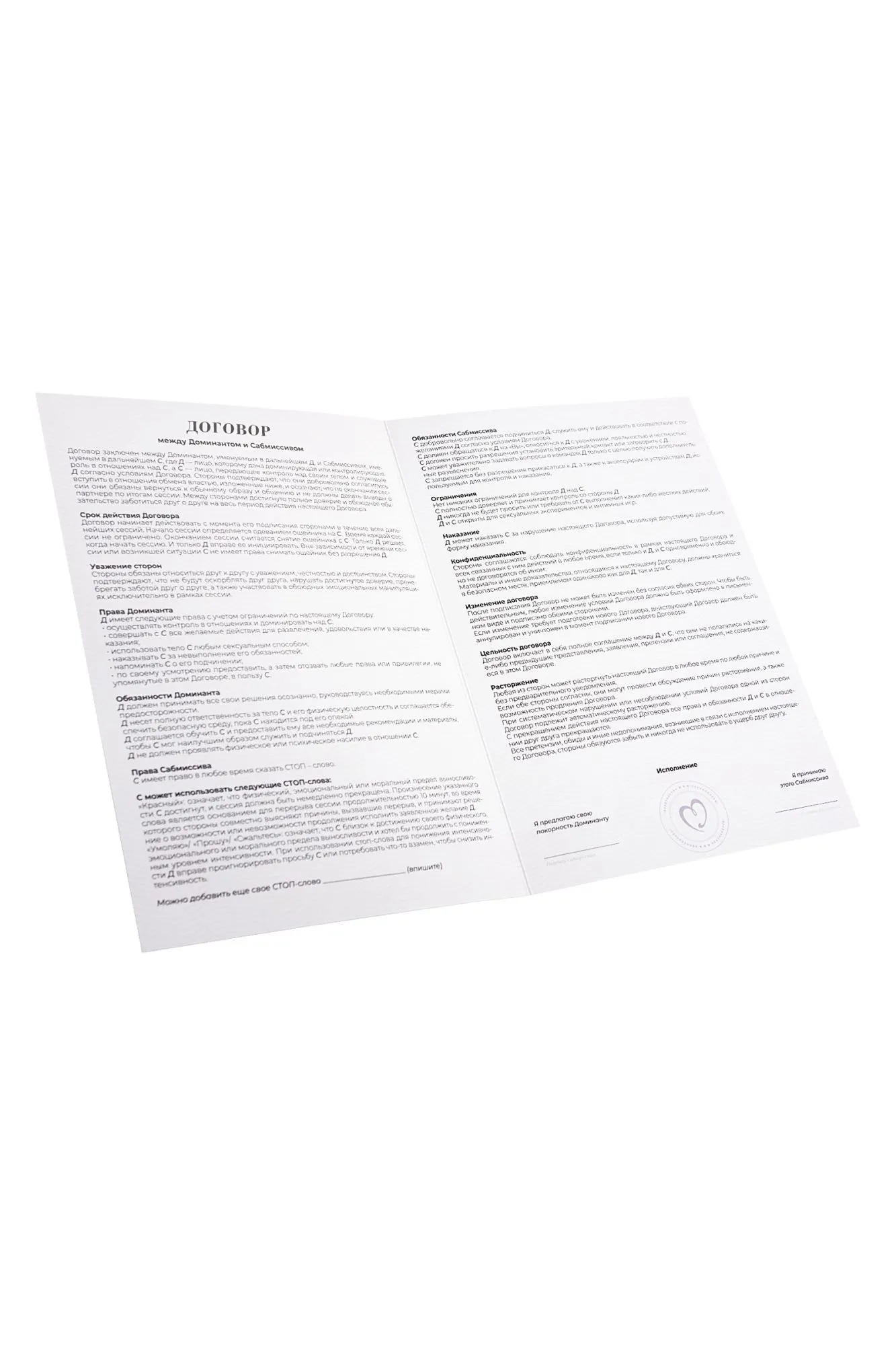 —Набор для ролевых игр в стиле БДСМ Eromantica «BDSM Time», два комплекта карт и контракт