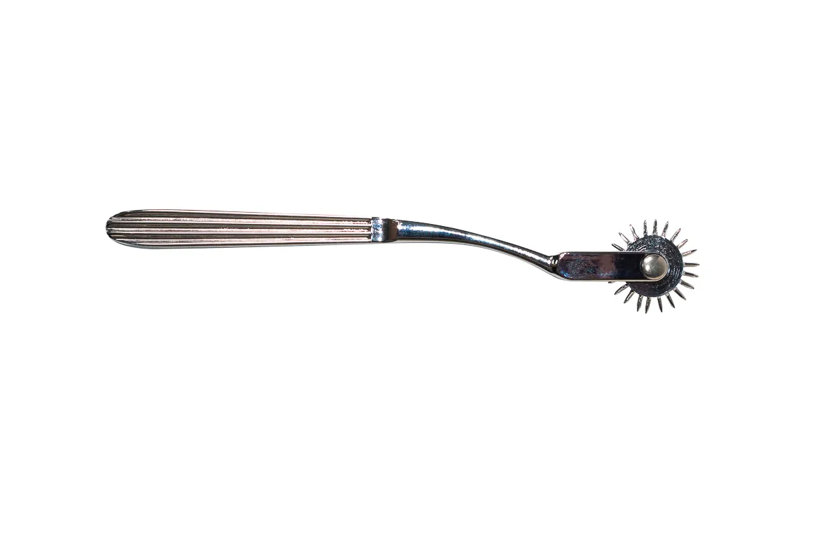 Это игольчатое колесо Вартенберга с острыми шипами позволит Вам доставить Вашему партнеру массу необычных тактильных ощущений. Степень воздействия зависит от силы надавливания. Это может быть легкое покалывание, вызывающее мурашки по телу, а может быть достаточно сильное болевое воздействие, способное заставить Вашего партнера стонать от сладких болевых ощущений. Выбор остается за Вами! Идеально подходит для медицинских и бондажных игр. Материал - Металл. Общая длина - 18,5 см.