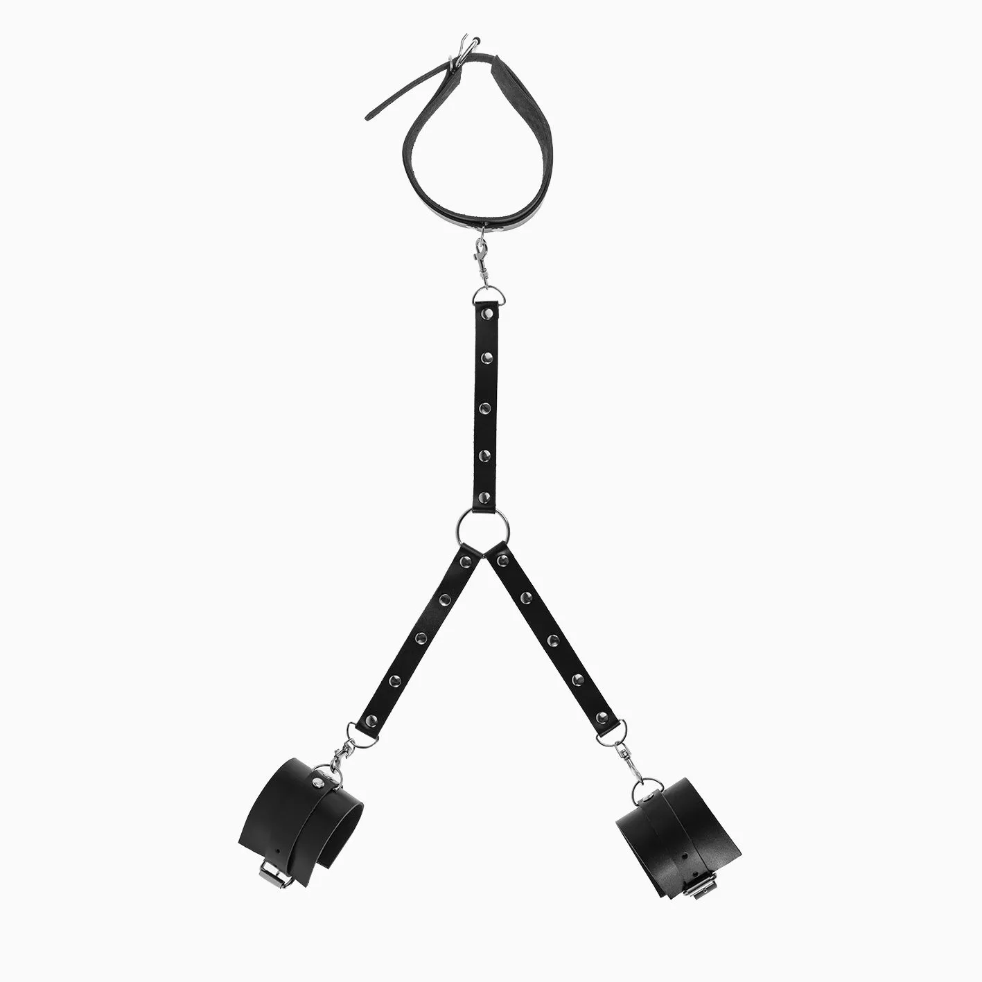 Получите полную сексуальную власть над своим партнером, ограничив его свободу этим невероятным комплектом, и он не сможет покинуть Вас без Вашего разрешения. На аксессуарах есть крупные металлические полукольца, к которым можно будет присоединить поводок или другие бондажные аксессуары.
