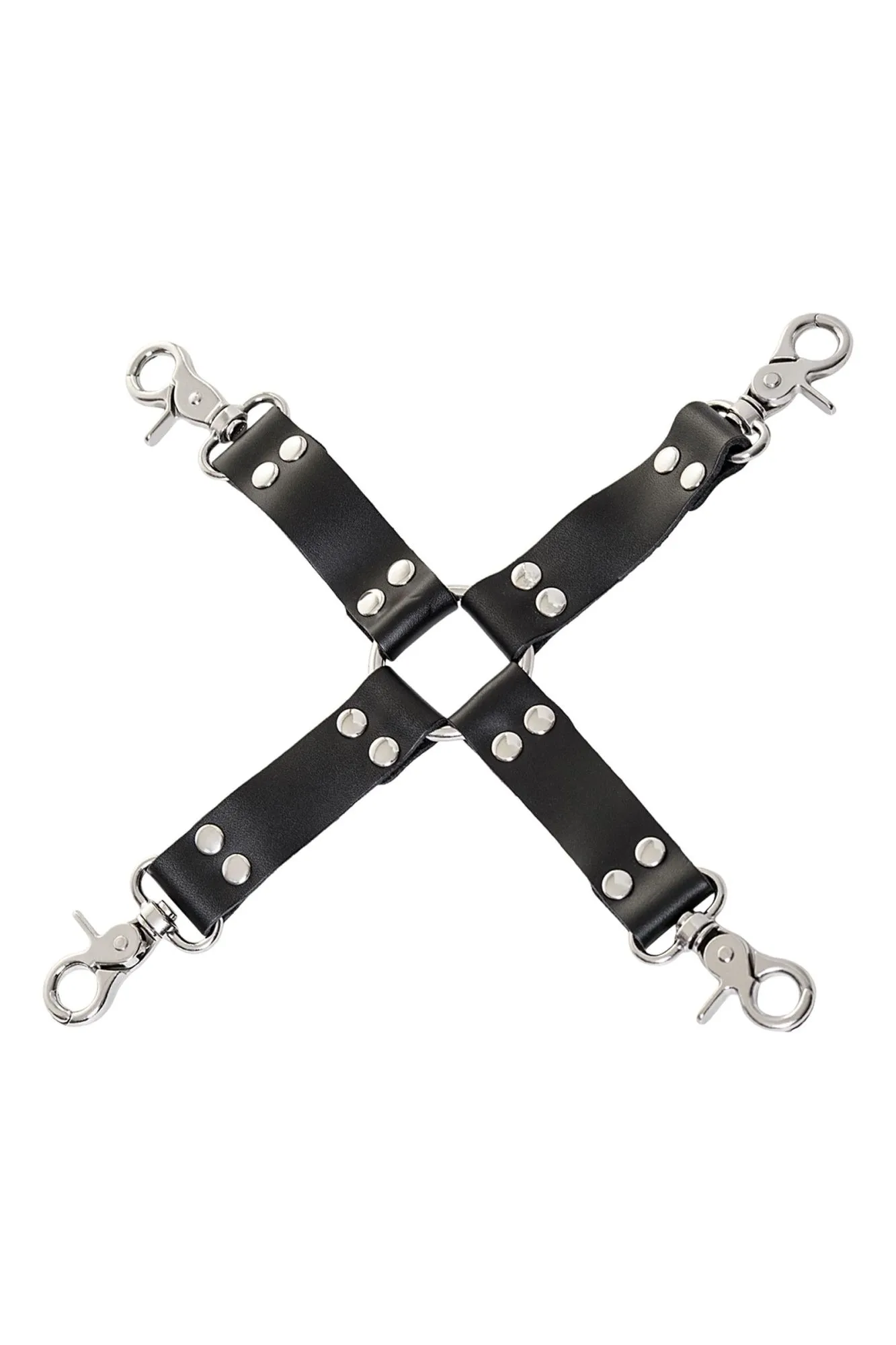 Этот 4-сторонний бондажный переходник с кожаными ремешками предназначен для скрепления фиксирующих приспособлений между собой. Это могут быть, к примеру, оковы и наручники. Такой универсальный переходник помогаетне ставить рамки своему воображению и желанию экспериментировать.