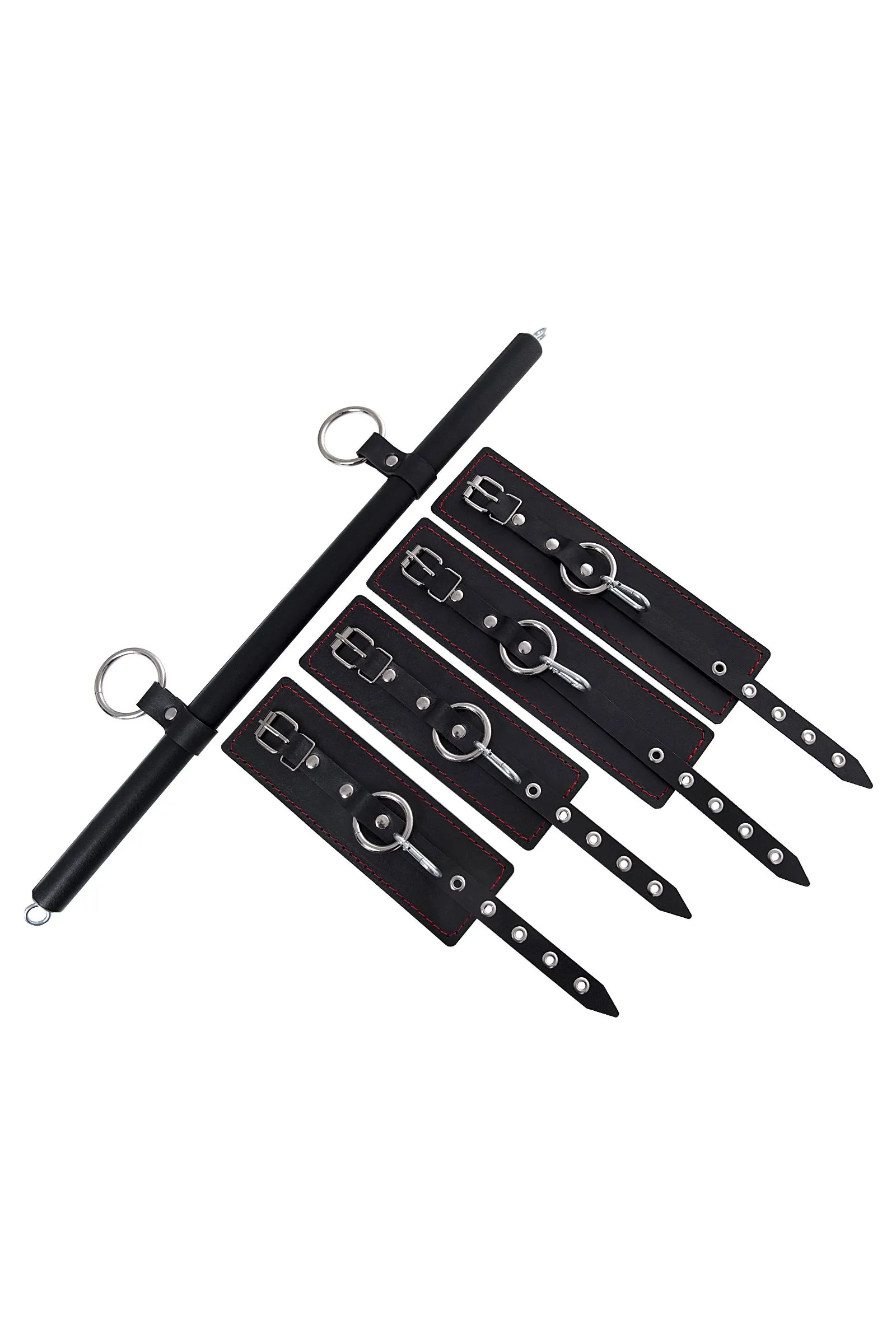 Бондажный набор Pecado BDSM, 4 точки фиксации, распорка, наручники, оковы, натуральная кожа, черный