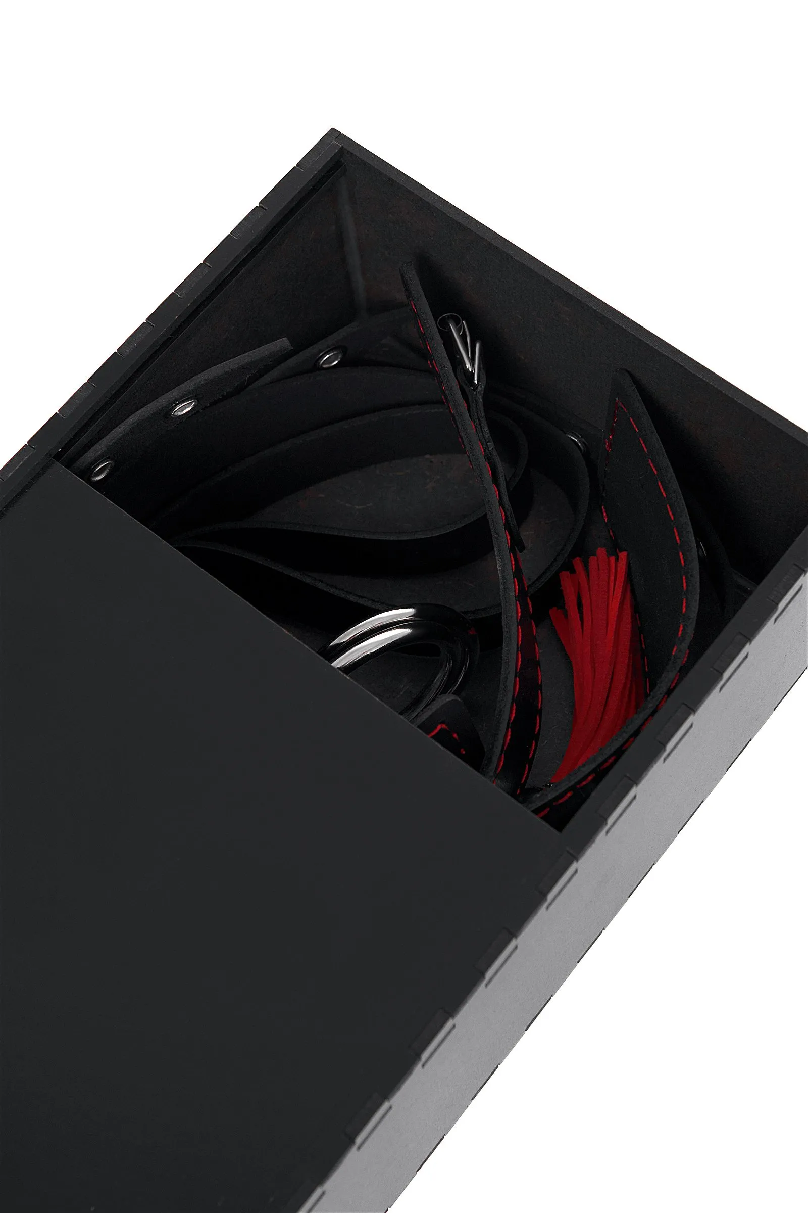 Готовы играть по-взрослому? С набором от Pecado BDSM воплощайте в жизнь смелые сексуальные фантазии, которые до этого момента были только мечтой. Хотите избавиться от искушения? Просто поддайтесь ему с Pecado BDSM! Бондажная система для фиксации рук и поддержки ног состоит из ошейника, пары фиксаторов для ног и пары наручников с контрастной строчкой красного цвета, всё это в фирменной деревянной коробке Pecado BDSM. Кожаный ошейник соединяется с наручниками с помощью кольца и металлических карабинов. Фиксаторы для ног крепятся к кольцу ошейника металлическими цепочками с карабином. Кольцо на ошейнике позволит присоединить и другие аксессуары при помощи карабинов и экспериментировать с позициями и ощущениями. С этим комплектом расширить возможности и способы фиксации проще простого! Варианты и комбинации ограничения свободы партнера зависят от вашей фантазии и желаний. Частичное обездвиживание и невозможность двигать руками дают вам полную власть над партнером – взрослые игры для взрослых. Pecado BDSM – российский бренд, использующий высококачественные материалы и надежную, проверенную временем фурнитуру. Все изделия изготавливаются вручную из натуральной кожи, безопасный и экологичный материал не оставляет повреждений на запястьях. Натуральная кожа, металлические крепления и ремешки дают уверенность в надежной фиксации, устойчивости к механическим нагрузкам и долговременном использовании. Ширина наручников - 6,5 см, длина наручников - 20 см