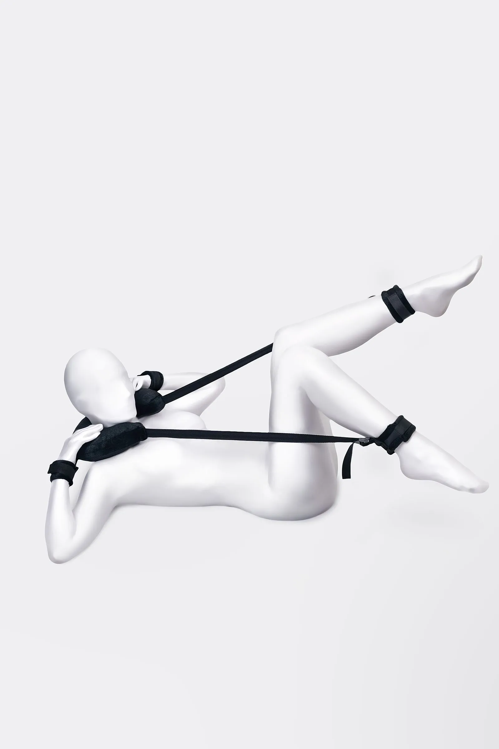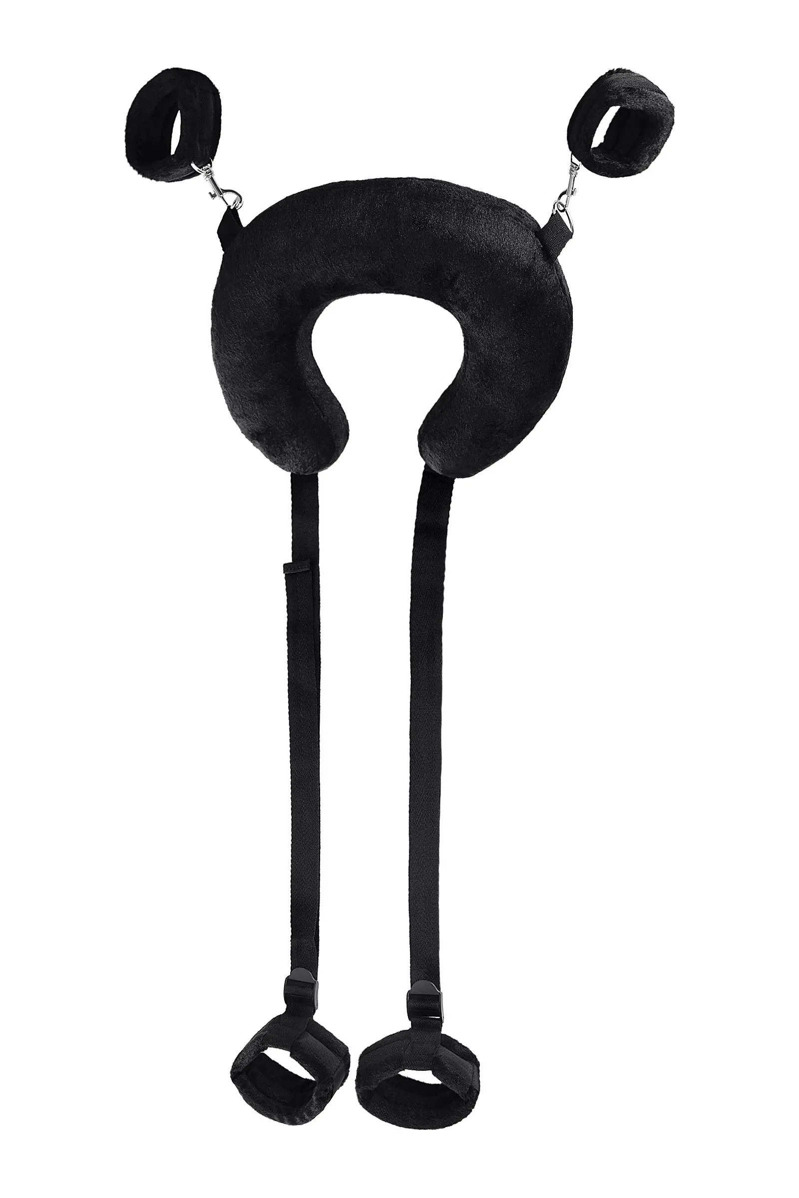 Чтобы экспериментировать и получать новые ощущения, необязательно быть опытным БДСМ-практиком. Главное, что должно волновать вас – это взаимное удовольствие. Для этого вам пригодится стропа для фиксации. Больше не нужно тратить силы на удерживание ног в нужной позиции. Мягкая подушка комфортно обхватывает шею, расслабляя ее и снимая нагрузку с позвоночника. Ремни регулируются и настраиваются по вашему желанию, чтобы удерживать бедра или лодыжки в нужном положении. Фиксирующая стропа оснащена также наручниками, позволяющим закрепить запястья у шеи, и лишить подчиняющегося партнера возможности двигать руками. Стропа для фиксации с подушкой для шеи поможет сосредоточиться на собственных ощущениях и подчиняться с комфортом. Материал: велюр, нейлон, полиэстер Общая длина: 127 см Внешняя окружность подушки: 85 см Внутренняя окружность подушки: 37 см Длина наручников: 21 см Длина поножей: 26,5 см Ширина подушки: 7,5 см Ширина наручников: 5 см Ширина поножей: 5 см