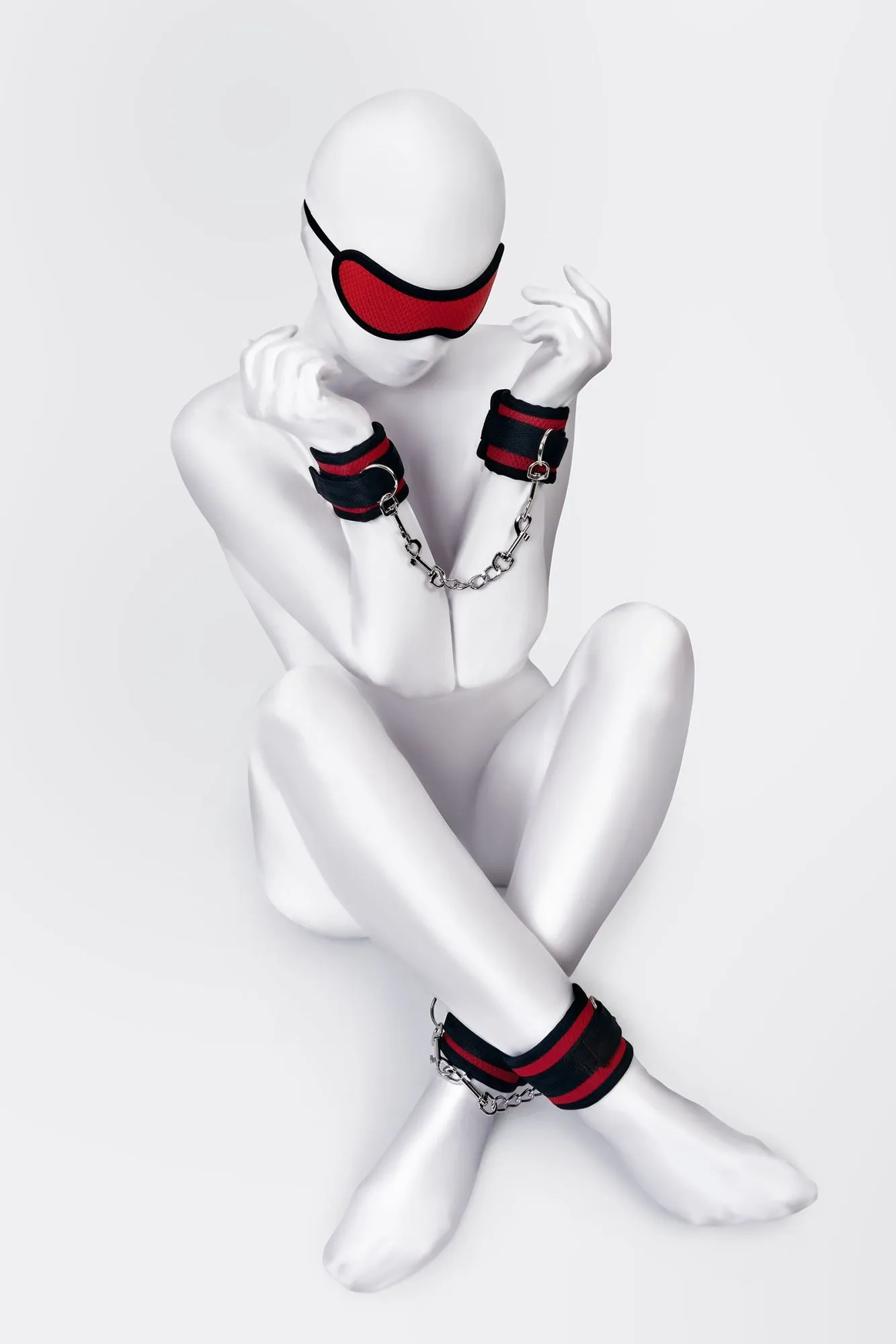 Наручники, оковы и маска - классический набор предметов для игры в подчинение, обязательный для начинающих и опытных поклонников БДСМ. Красно-черный бондажный набор для горячих страстей в вашей спальне! Аксессуары, входящие в него, можно использовать вместе и отдельно. Какому ограничению подвергнуть сабмиссива сегодня? Зафиксировать руки, ноги, закрыть ему свет, или полностью обездвижить? Маска, наручники, оковы и ремни для фиксации - все это незаменимые аксессуары для остроты ощущений. Ограничение свободы движения руками и ногами и полная темнота обостряют другие чувства до предела. Ремни из набора можно протянуть под матрасом и пристегнуть к ним руки и ноги, в таком положении сабмиссив полностью будет во власти своего Доминанта. Длина ремней регулируется под размер матраса, наручники и оковы имеют застежку велкро, маска крепится на резинке – все это дает возможность надеть предметы на человека любого размера. Дополните комплект аксессуарами - ошейником, кляпом, плеткой, и продемонстрируйте что значит грубое обращение и полный контроль над свободой. Материал: полиэстер, нейлон Цвет: красно-черный Длина наручников 23,5 см Длина оков (поножей) 28 см Длина маски 25 см Общая длина ремней 470 см Ширина наручников 6 см Ширина оков (поножей) 6 см Ширина маски 7 см Ширина ремней 2,5 см ЦЕПОЧКА В КОМПЛЕКТ НЕ ВХОДИТ!