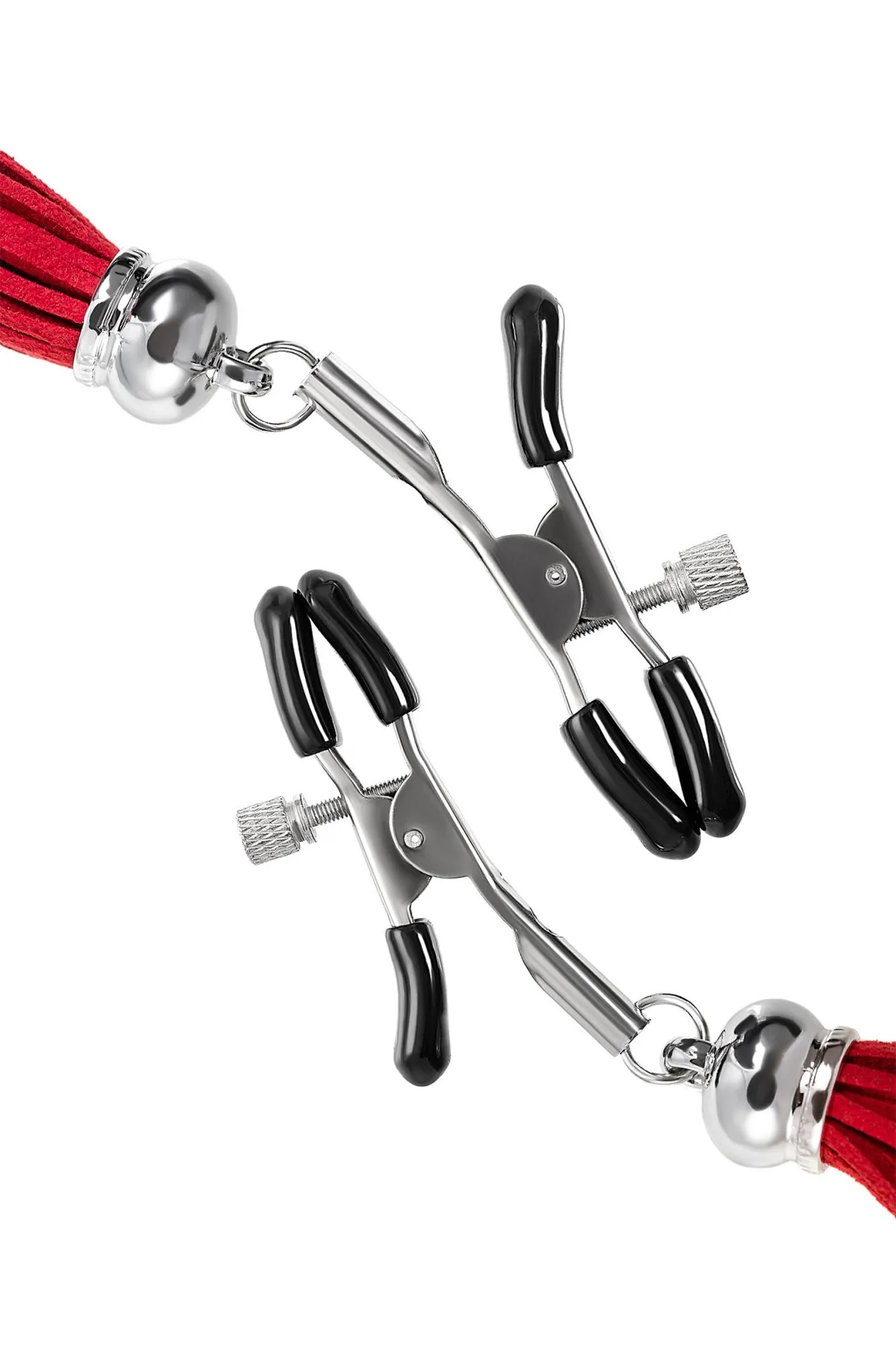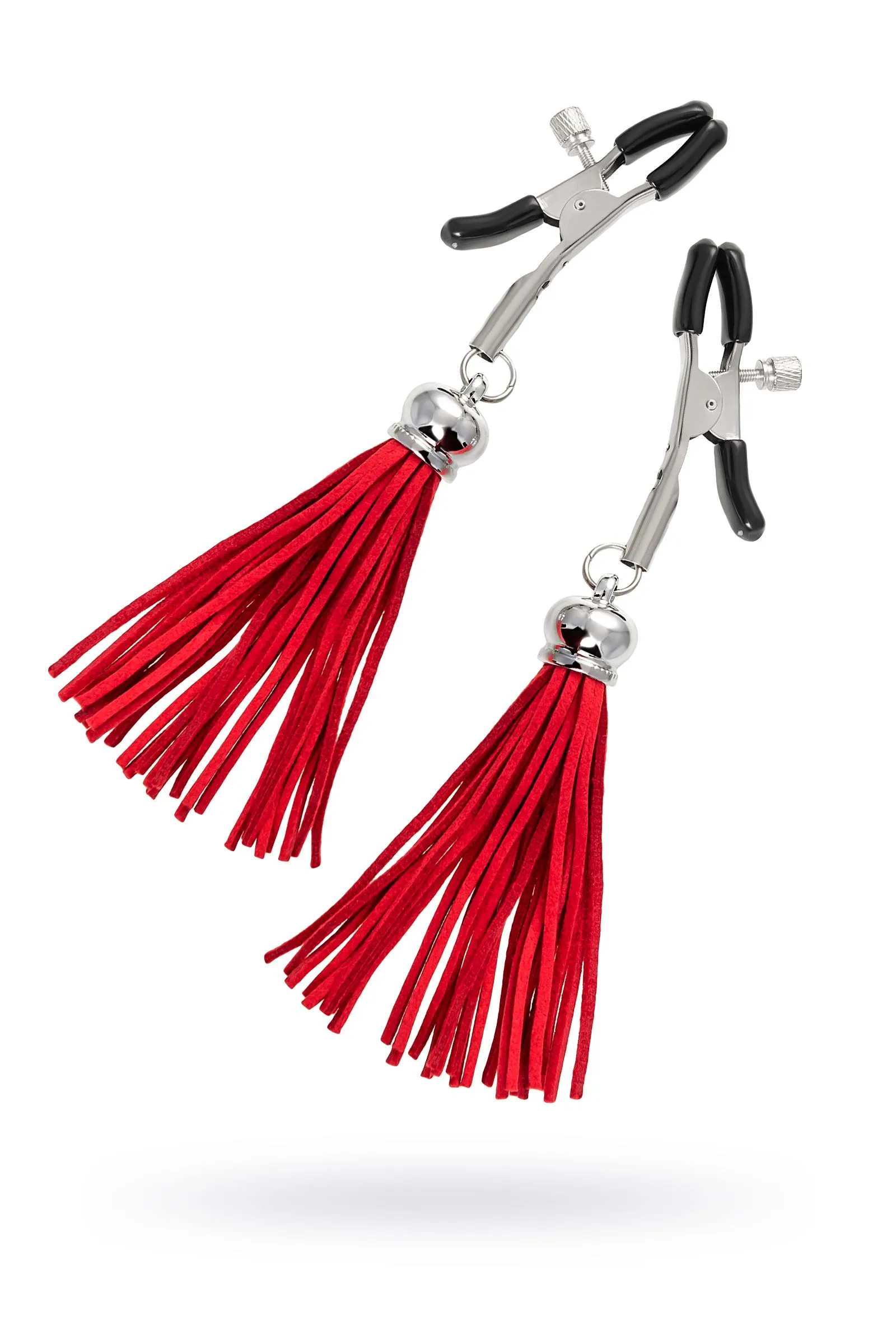 —Зажимы на соски Pecado BDSM, «Прищепки», с кисточками из замши, металл, красные