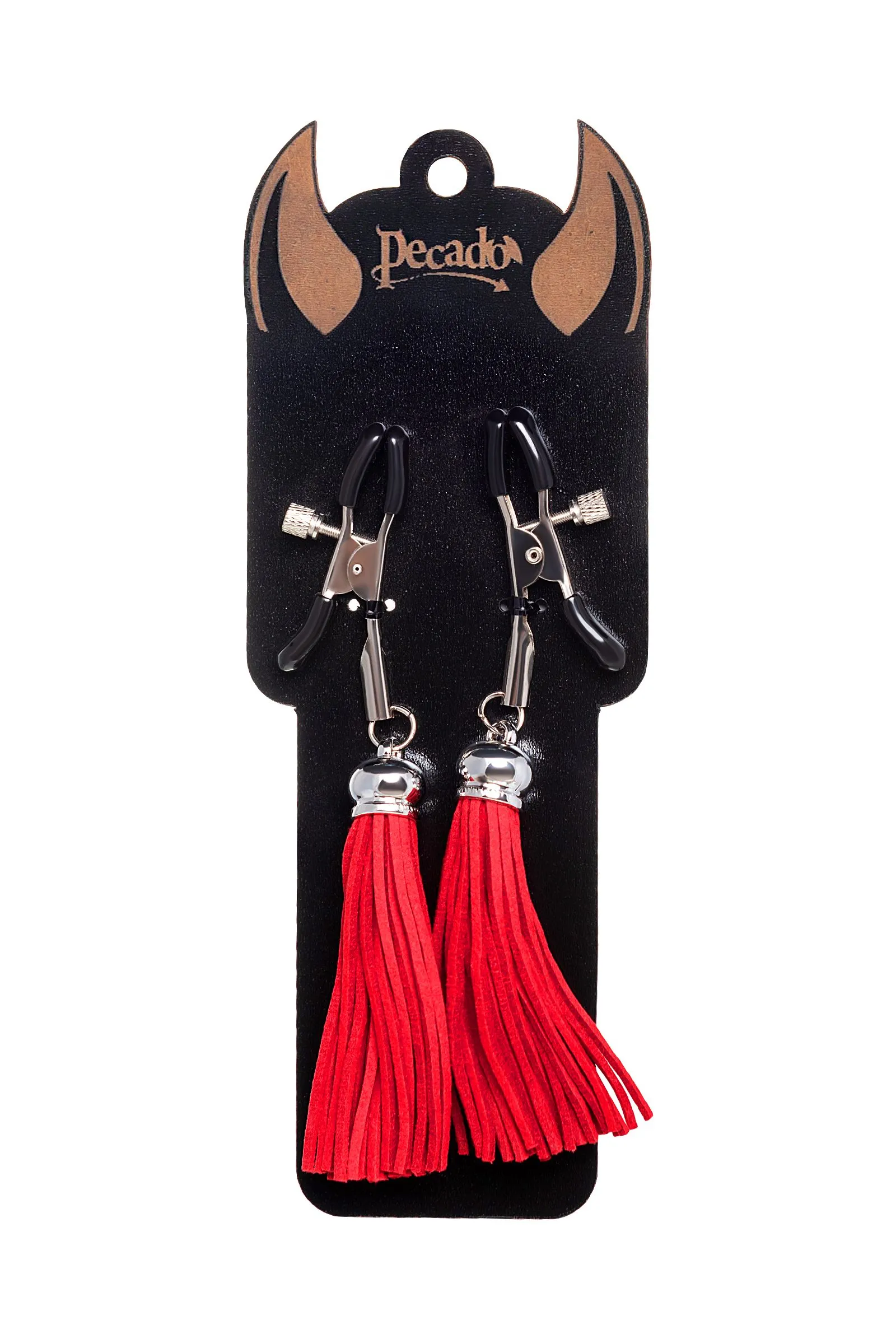 Зажимы на соски Pecado BDSM, «Прищепки», с кисточками из замши, металл, красные
