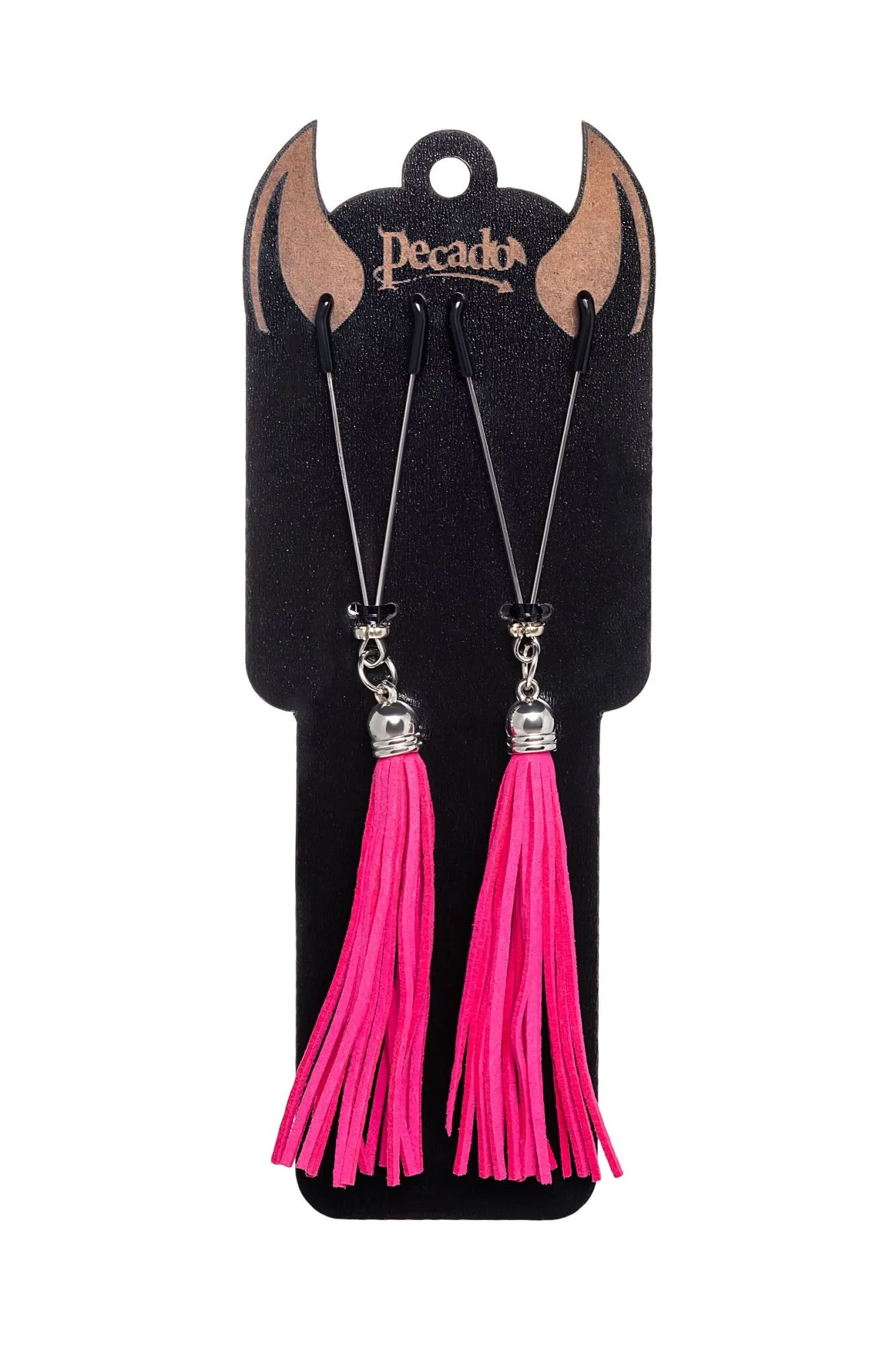 Попробуйте новые, дерзкие ощущения глубокого наслаждения! Зажимы-вилки от Pecado гарантируют смешение ярких чувств от тактильного контакта с нежной кожей сосков. Зажимы выполнены из высококачественных материалов. Металлическая часть компактная, приятная на ощупь. На концах черные резиновые наконечники, для безопасного воздействия на эрогенные зоны. Интенсивность сжатия аксессуара регулируется миниатюрными колечками. В зависимости от личных предпочтений и сценария игры, можно выбрать легкое пощипывание, или сильное сдавливание. Бахрома из натуральной замши, в насыщенном цвете фуксии, добавляет манящую красоту смелому атрибуту. При каждом соблазнительном покачивании груди, кисточки движутся в пикантном ритме. Также подходит для стимуляции и возбуждении в области половых губ и клитора. ● Ручная работа. ● Надежная высококачественная фурнитура. ● 100% натуральная замша. ● Не требуют специального ухода.