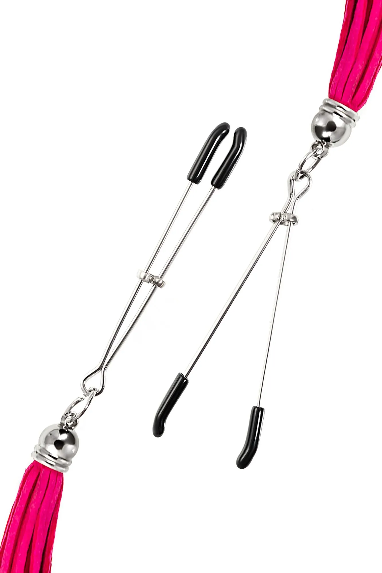 Зажимы на соски Pecado BDSM, «Вилки», с кисточками из замши, металл, фуксия