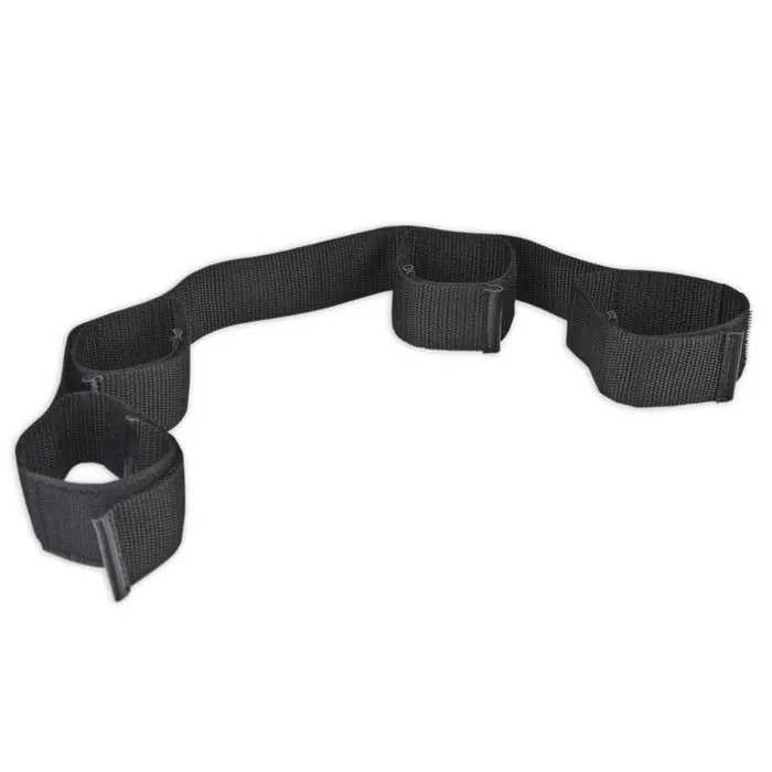 Фиксатор черного цвета, изготовленный из плотной черной корсажной ленты. Ширина - 5 см, длина - 78 см. По всей длине расположены фиксаторы для рук/запястий (2 шт) и лодыжек (2 шт) Их размер легко регулируется при помощи застежек-липучек.