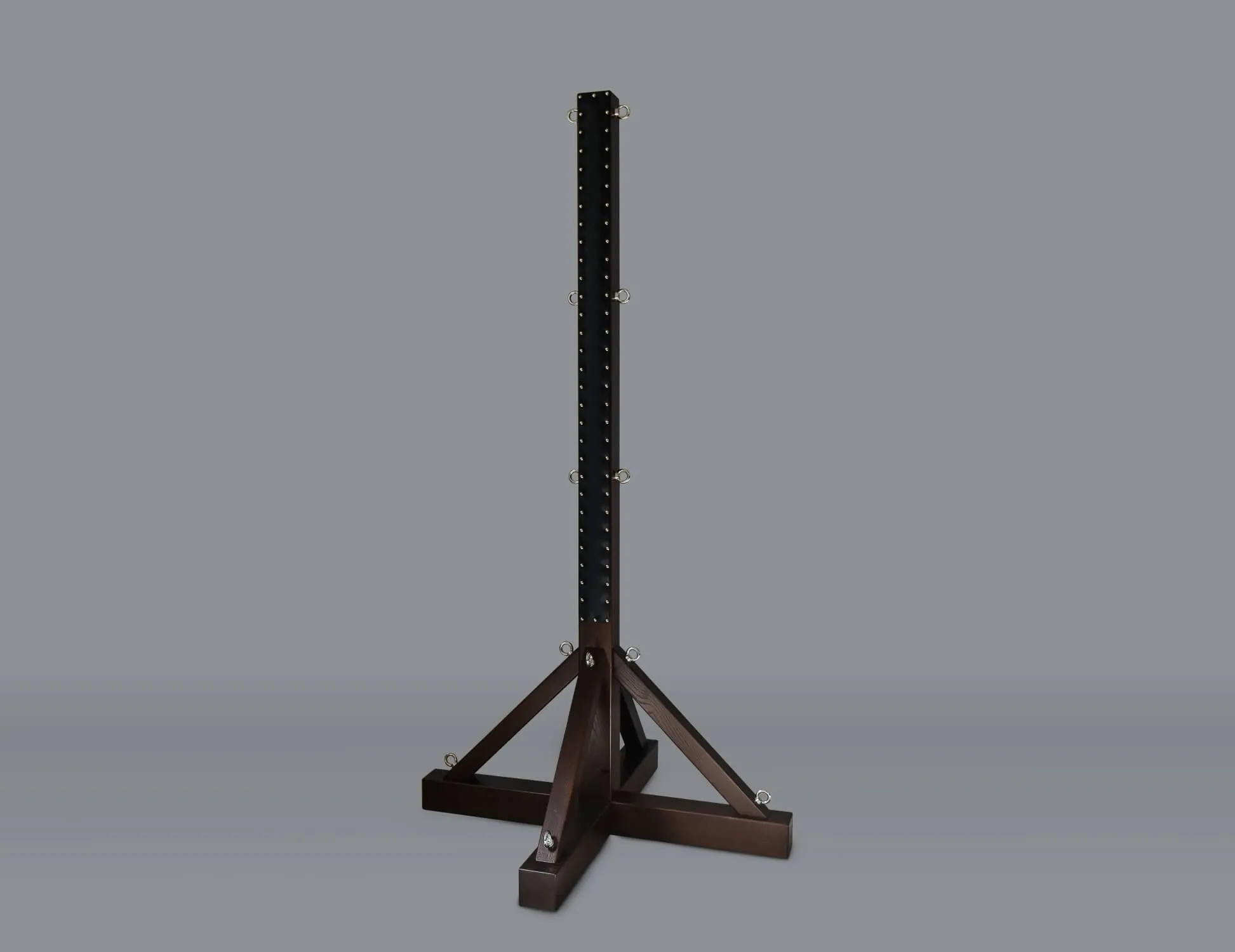Столб высотой 210 см предназначен для пар, практикующих БДСМ игры и желающих полностью подчинить себе своего партнера. Столб выполнен из массива дуба и натуральной кожи черного цвета, надежно зафиксированной на столбе при помощи клепок. На изделии присутствует несколько специальных колец, расположенных по всей длине столба. Благодаря им будет возможна надежная фиксация партнера при помощи различных бондажных аксессуаров. Прикованный к столбу партнер испытает чувство полной беспомощности и будет готов безропотно принять любое наказание своего господина.