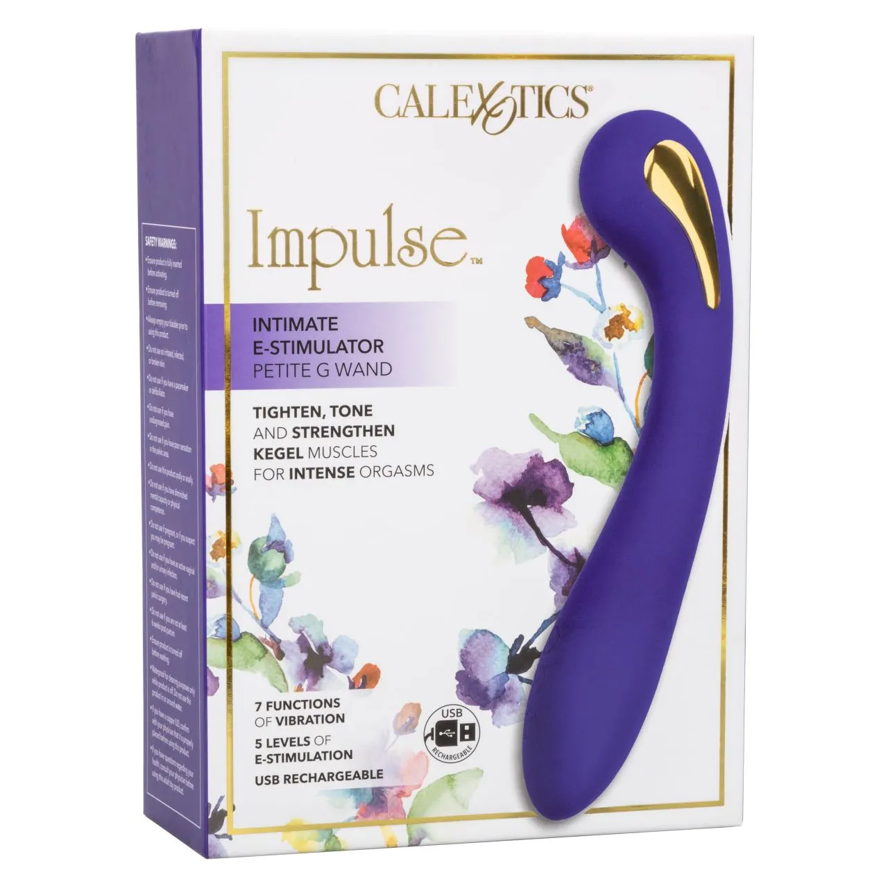 Impulse Intimate E-Stimulator Petite G Wand – гибридный вибромассажер для стимуляции точки G, сочетающий в себе вибрацию и электростимуляцию. Он изготовлен из гипоаллергенного не имеющего запаха и не содержащего фталатов силикона. Стимулятор имеет плавный эргономичный изгиб, большую округлую головку, 7 функций равномерной интенсивной вибрации и 5 различных уровней электростимуляции.