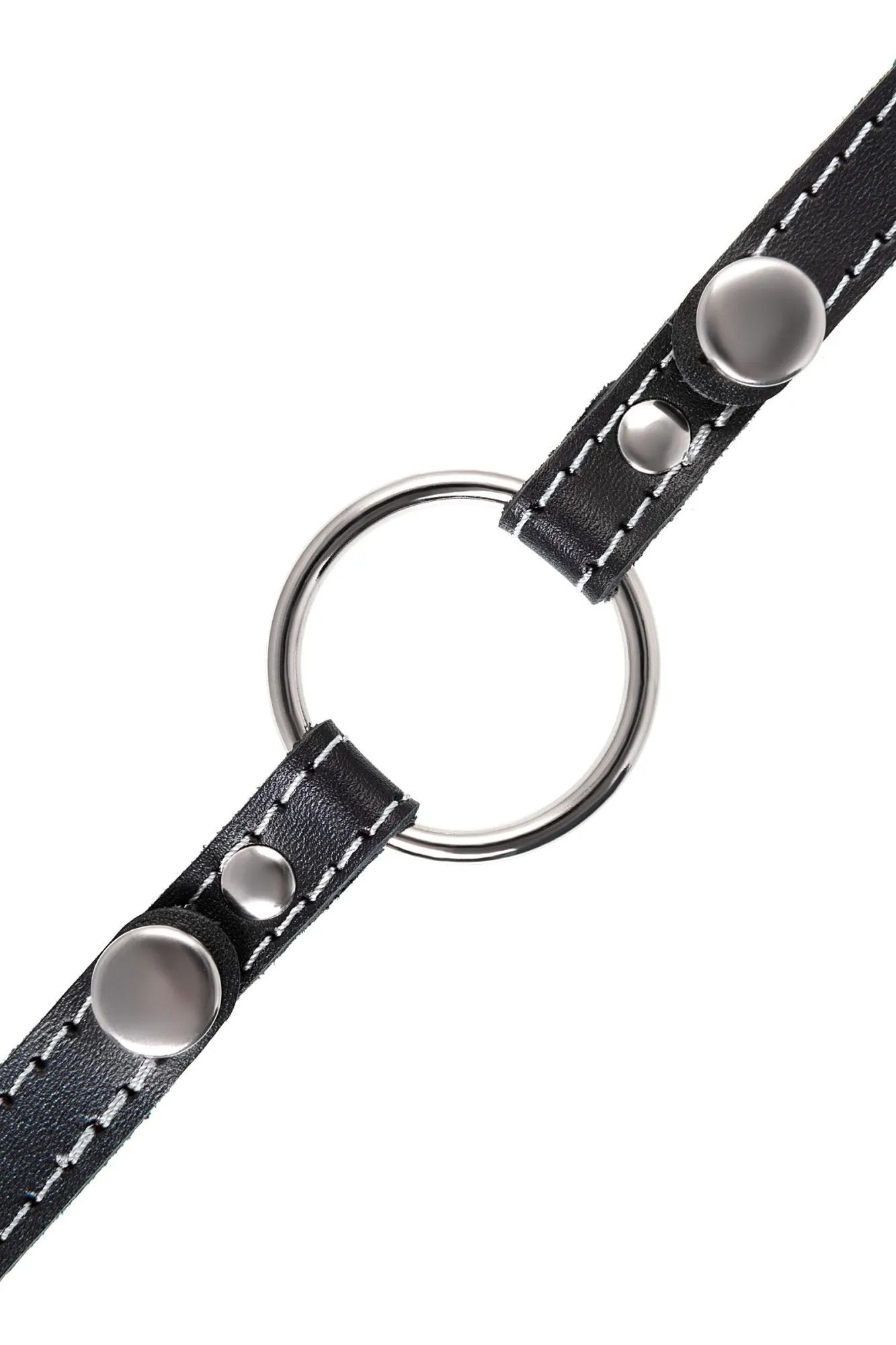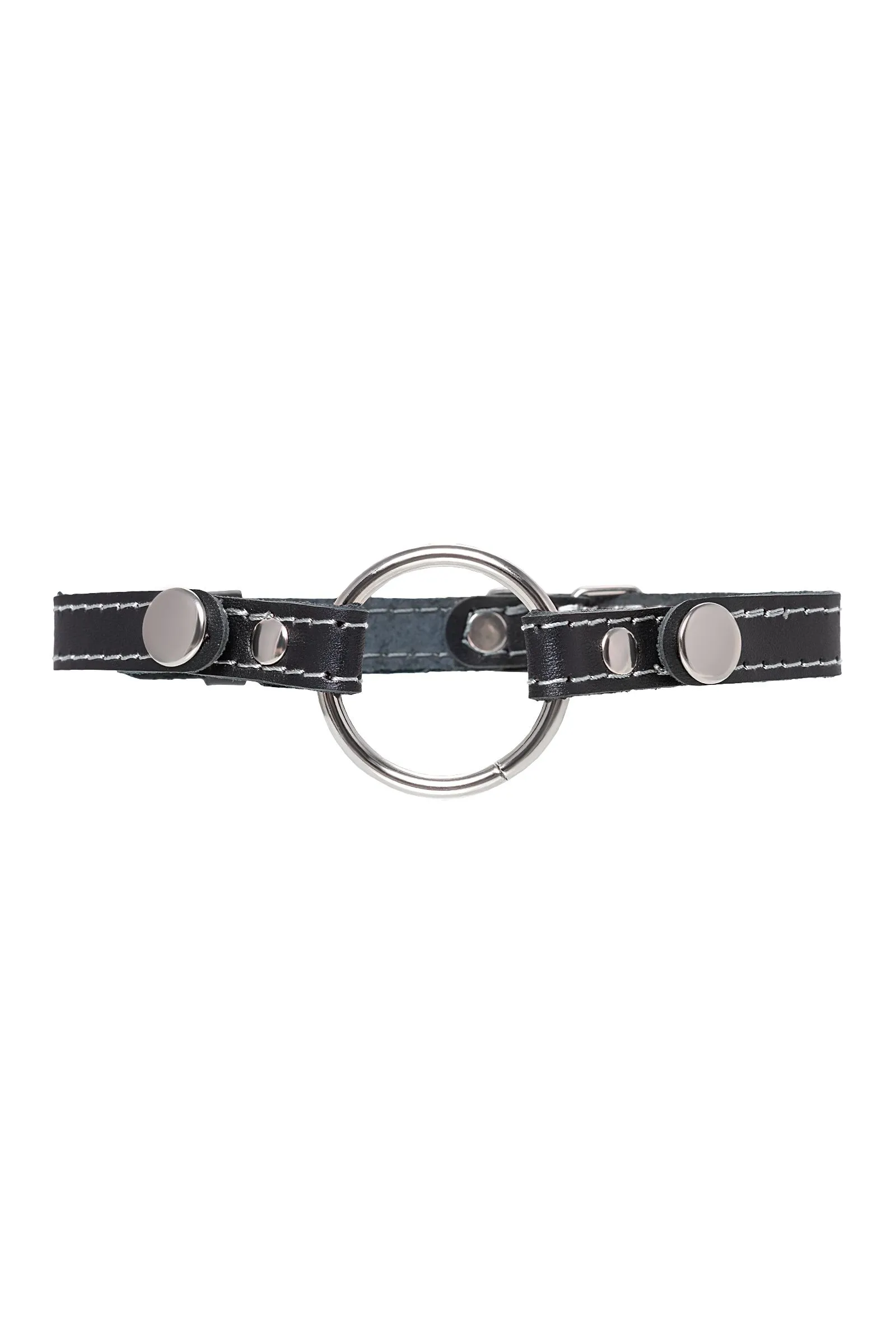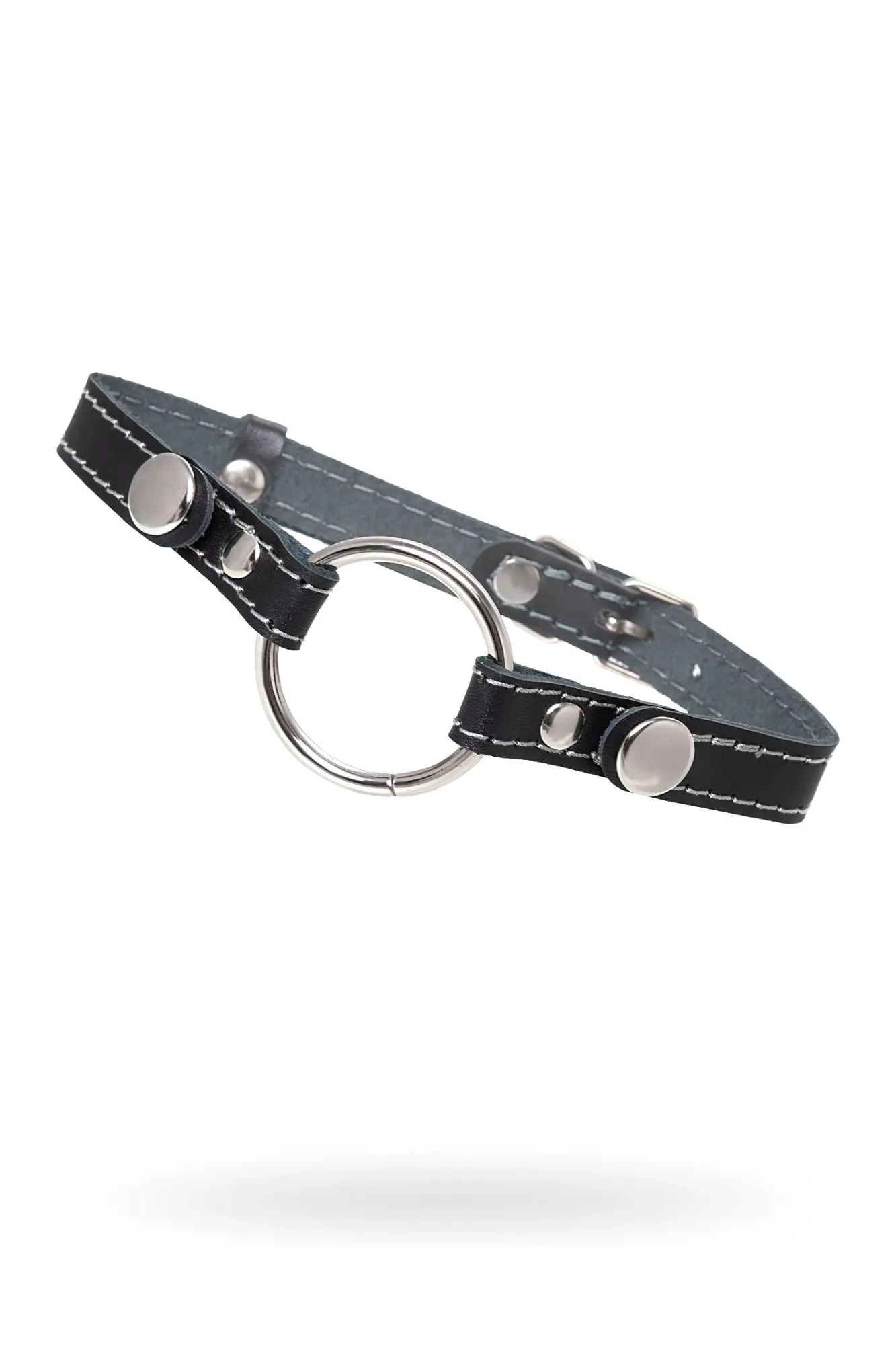 Кляп Pecado BDSM, «Кольцо 46 мм», с белой строчкой, натуральная кожа, черный