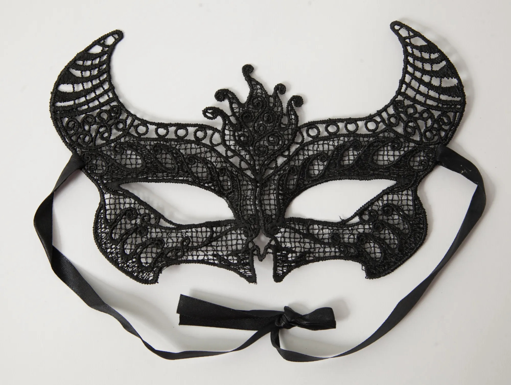 Кружевная маска в венецианском стиле с многочисленными ажурными узорами. Завязывается на атласные ленты. Размеры маски: длина- 22 см, ширина - 11 см, цвет- черный. Упаковка- бумажный конверт..