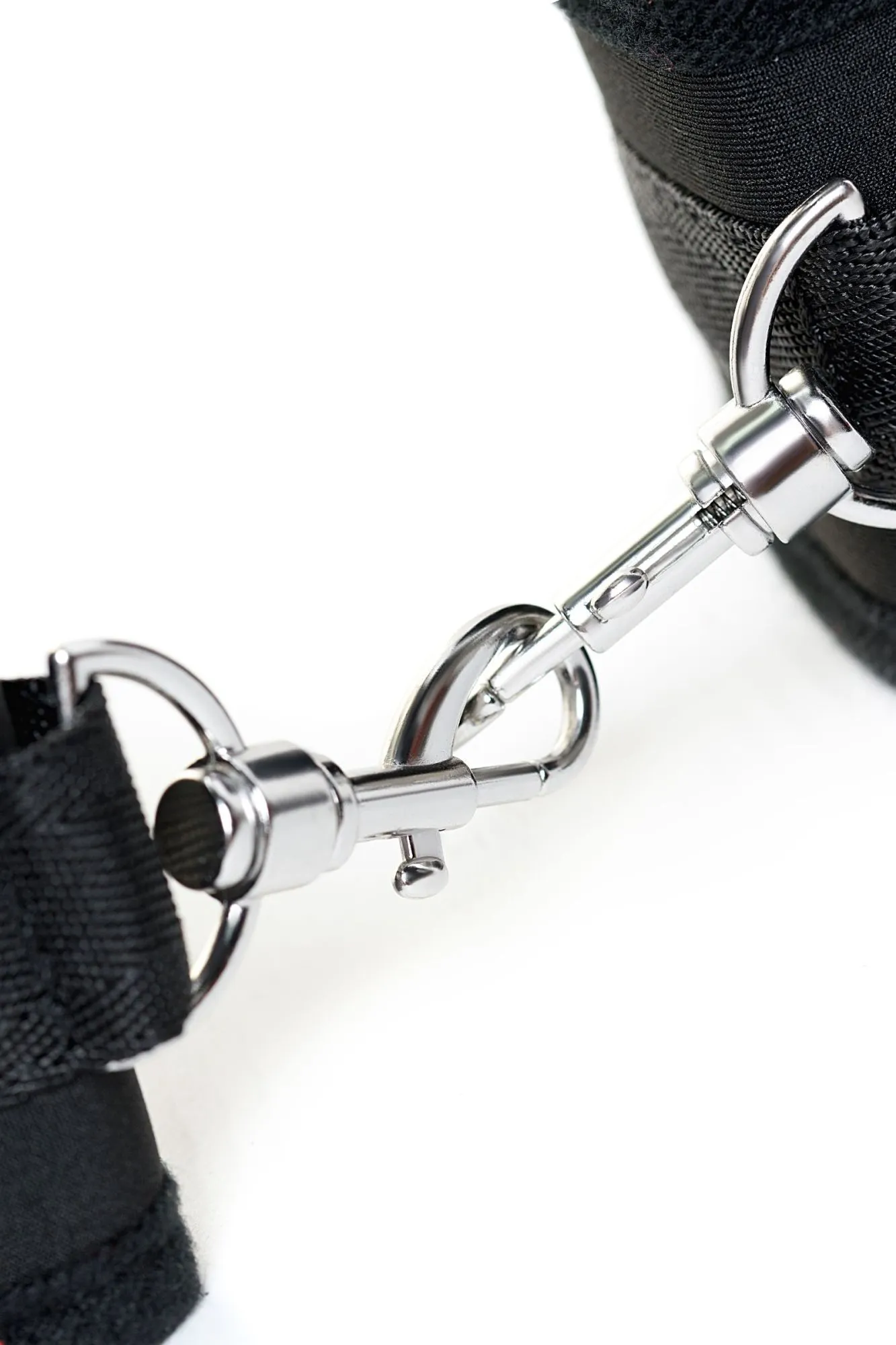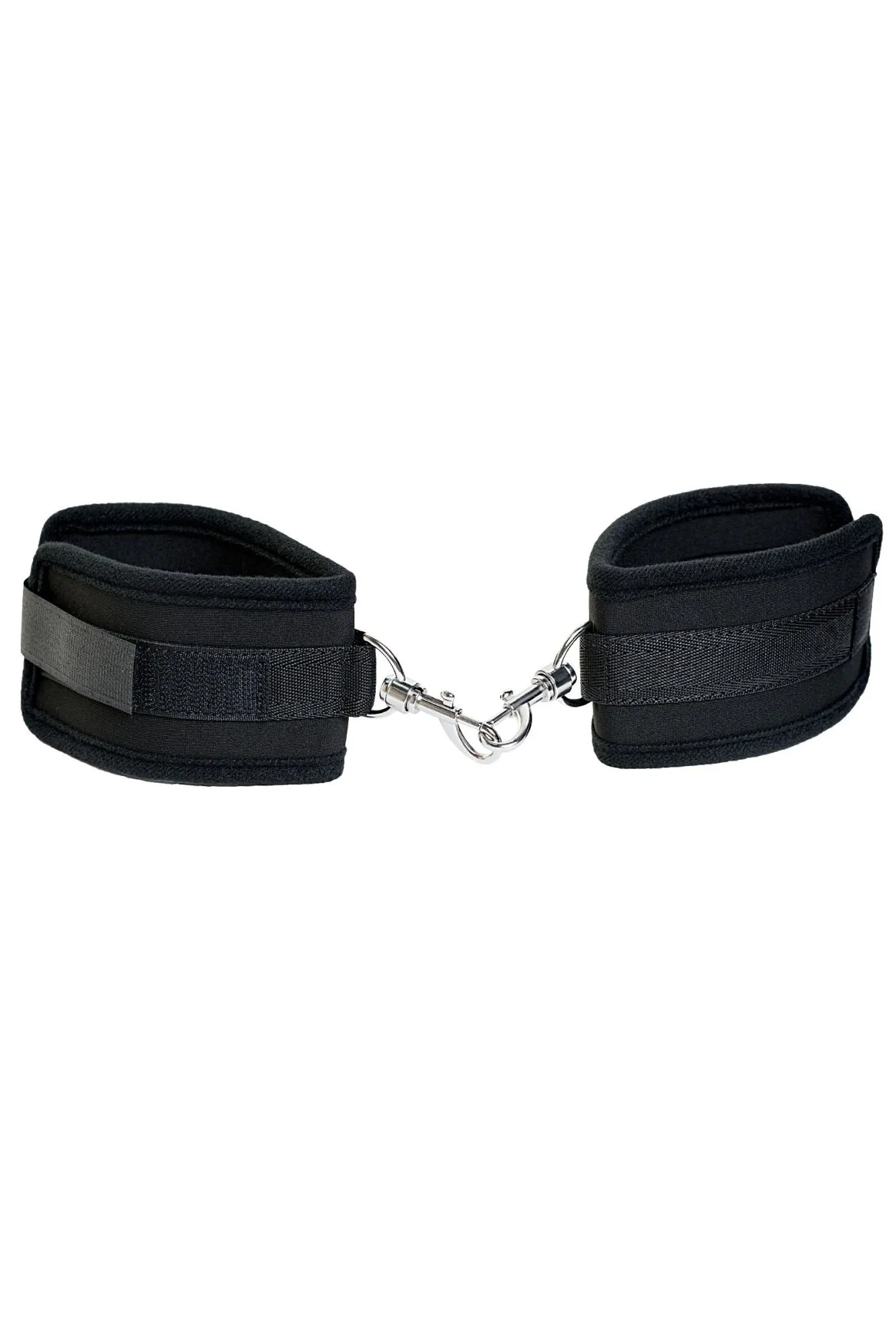 Оковы на ноги черные неопреновые. Мягкие оковы с застежкой велкро, позволяющей максимально регулировать объем. Между собой манжеты соединены карабинами. сцепка 10 см