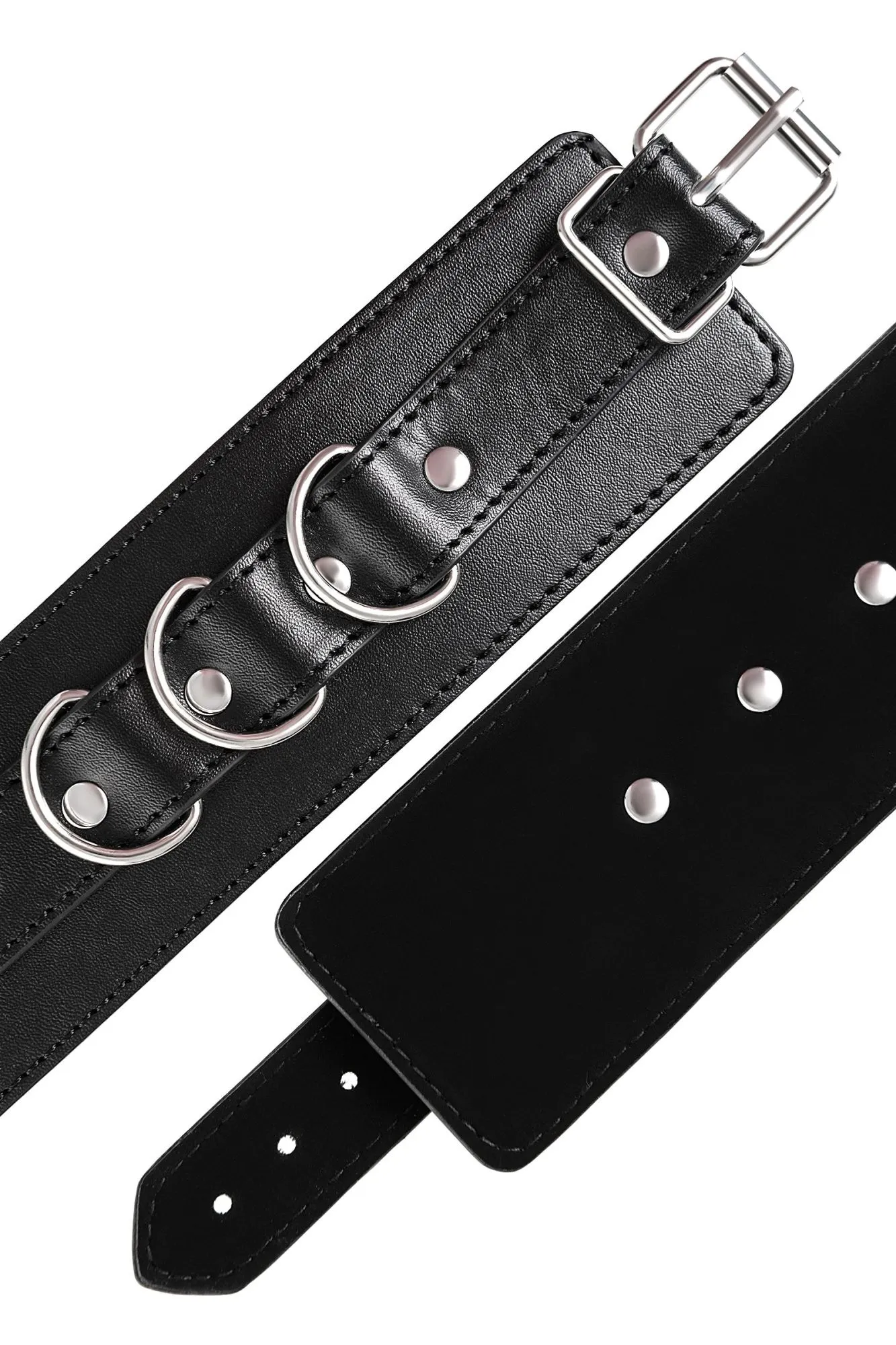 Черные наручники с металлической отделкой – брутальные ограничители свободы. К тому же, они на самом деле весьма жестко обхватывают руки и надежно соединяют их между собой цепочкой на карабинах. Три кольца для крепления позволяют дополнить наручники аксессуарами и использовать различные варианты фиксации. Длина наручников позволяет использовать их практически на любой размер рук. Отрегулировать размер и силу обхвата легко с помощью ремешка и металлической пряжки. Эти наручники с металлической отделкой – настоящий стиль и функционал. Теперь Доминант покажет, что значит грубое обращение и полный контроль над свободой. Материал: PU кожа, металл Цвет: черный Длина: 20 см Ширина: 6 см Длина сцепки: 15,5 см
