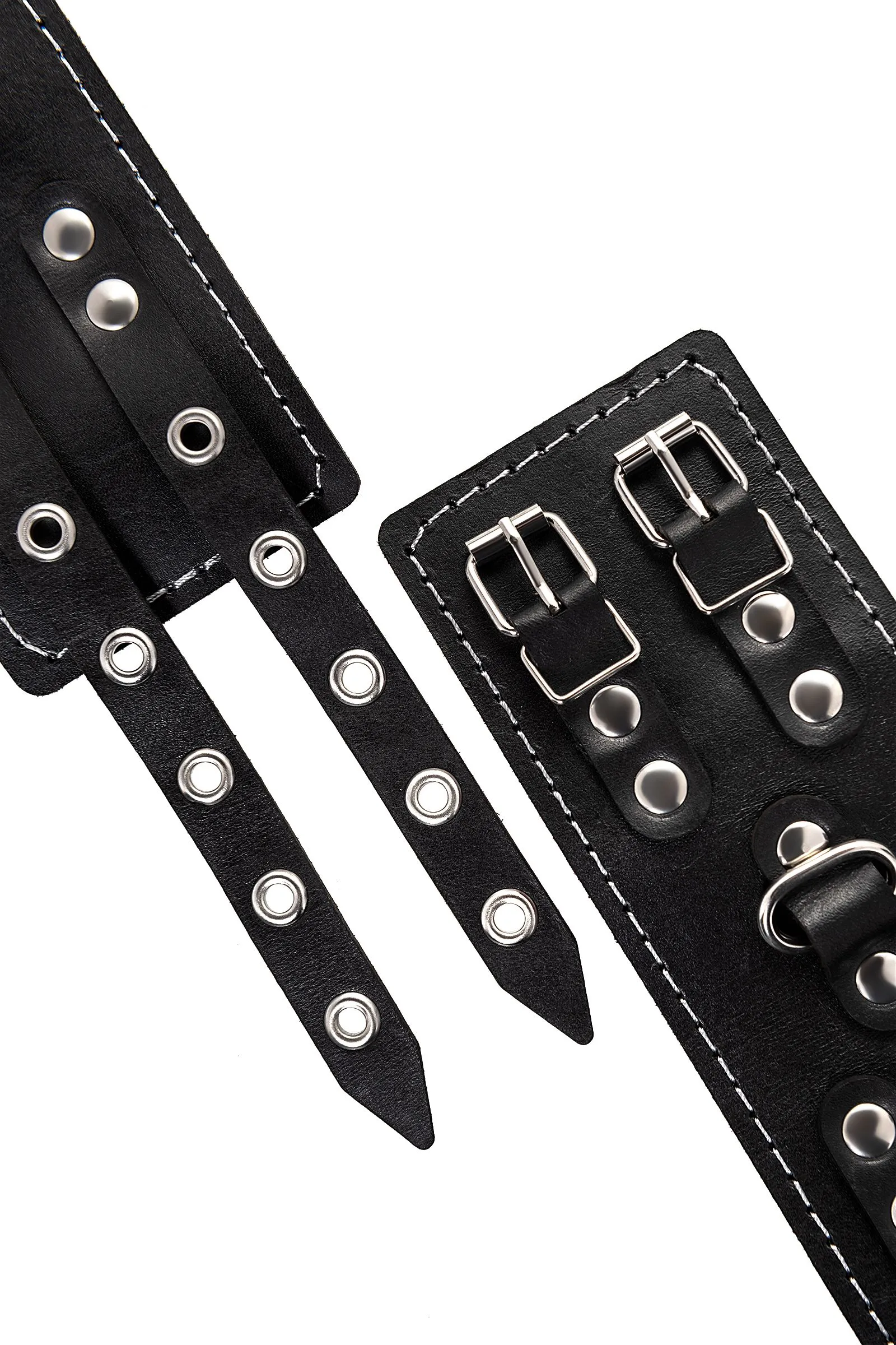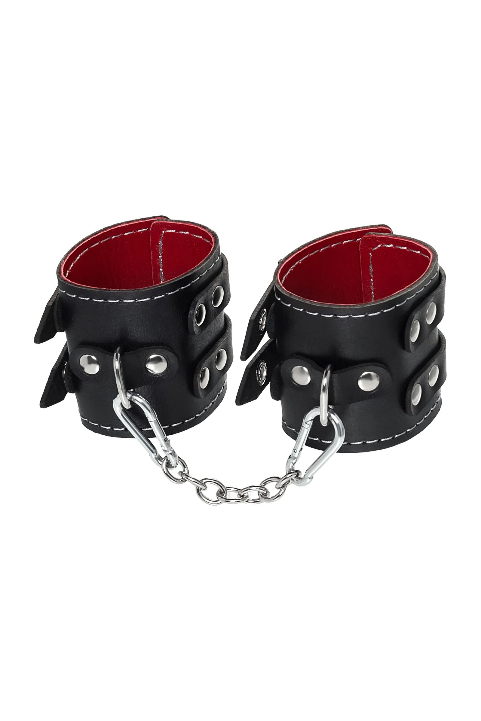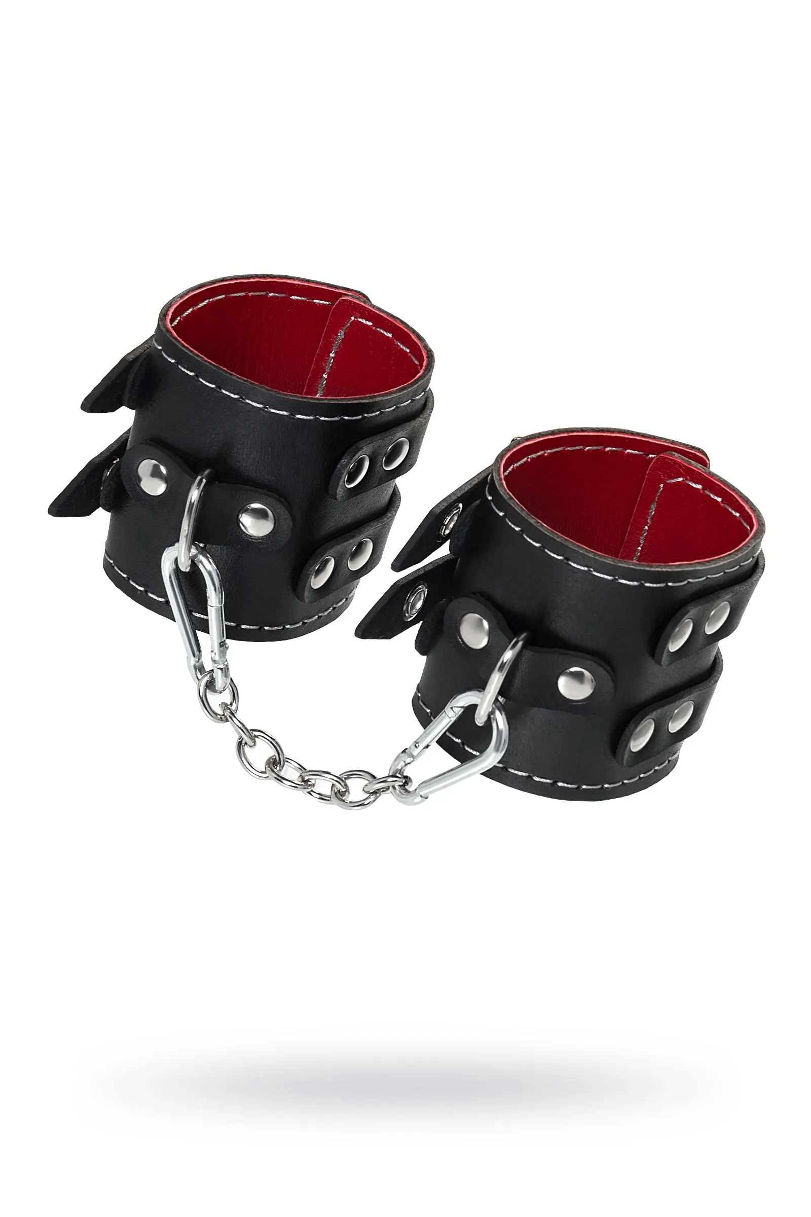 Наручники Pecado BDSM, с двумя ремнями и красной подкладкой, натуральная кожа, черные