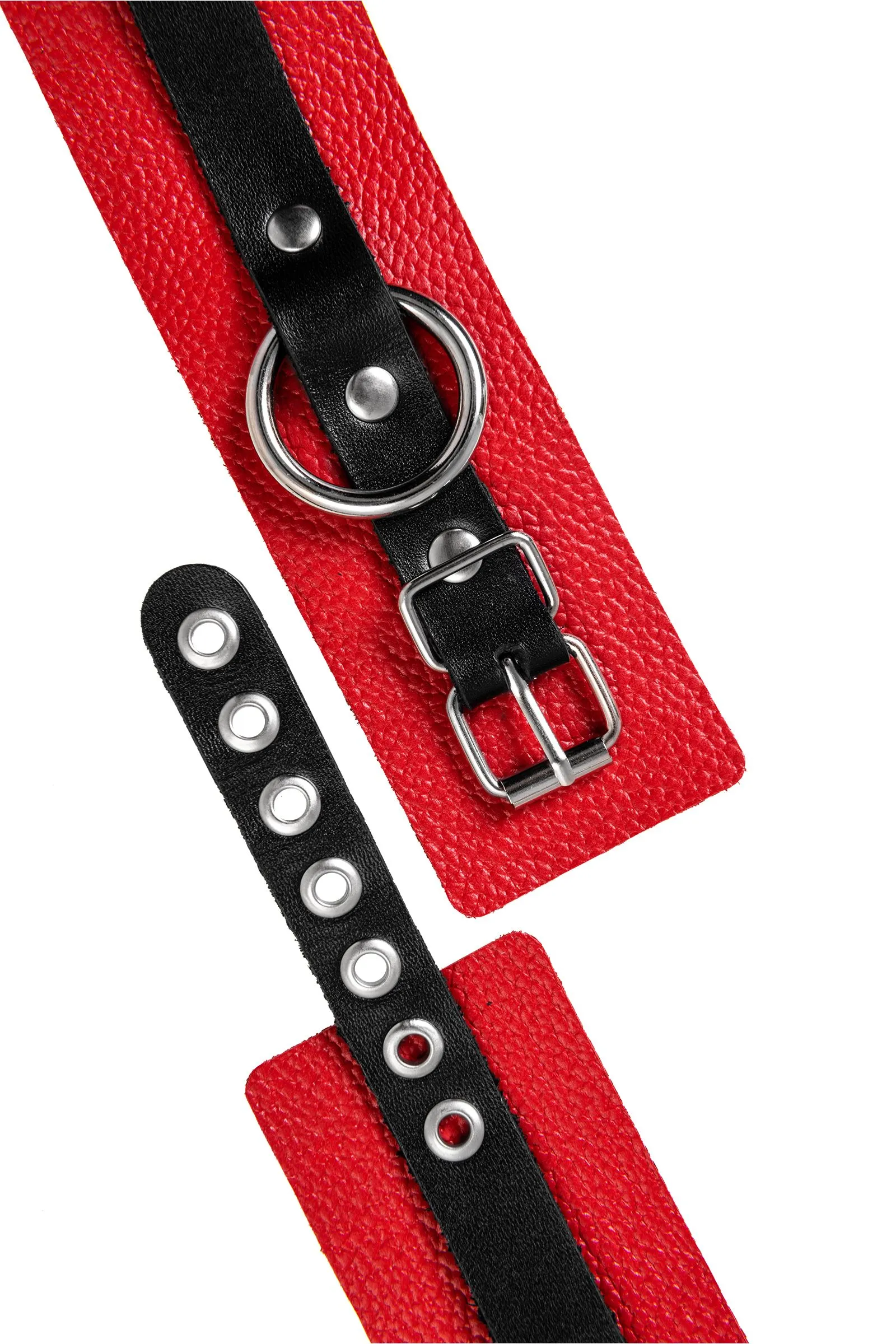 Мягкие Оковы с жёсткими ремешками от Pecado помогут обездвижить партнера во время сексуальных прелюдий или жестких БДСМ-играх. Оковы изготовлены полностью из красной, натуральной кожи. Ремешки выполнены из чёрной жёсткой кожи, украшены люверсами. Выделка материала произведена вручную. Ремешки и широкая манжета хорошо держат форму: не тянутся и не мнутся. Качественная металлическая фурнитура добавляет лоска изделию, а аромат натуральной кожи повышает градус возбуждения. Благодаря широкому запасу регулировок, можно подобрать необходимый обхват. Аксессуар удобно застегивать и легко расстегивать. При правильном использовании не оставляет следов на теле и не доставляет дискомфорта. Манжеты оков соединяется между собой помощью двух карабинов и съемной стальной цепочки. Подходит и для женских, и для мужских ног. ● 100% натуральная кожа. ● Ручная работа. ● Износостойкий, тактильно приятный материал. ● Надежная высококачественная фурнитура. ● Универсальный размер. ● Ширина манжет - 5,5см. Длина манжет - 25см. Длина сцепки - 24см.