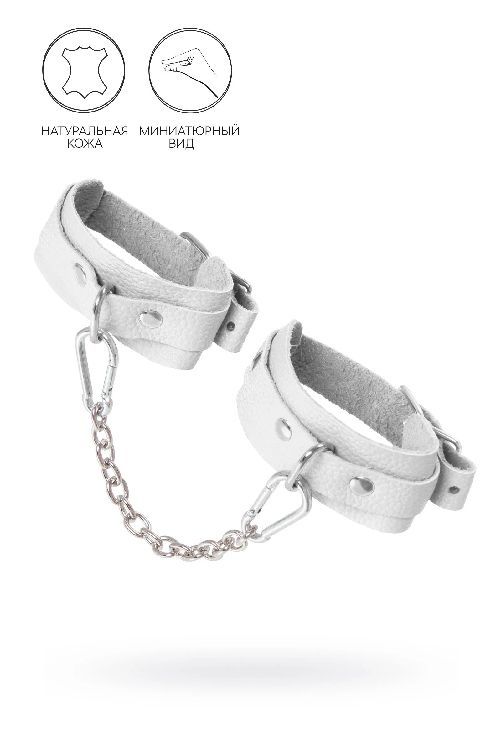Оковы мини Pecado BDSM, со скруглёнными углами, натуральная кожа, белые