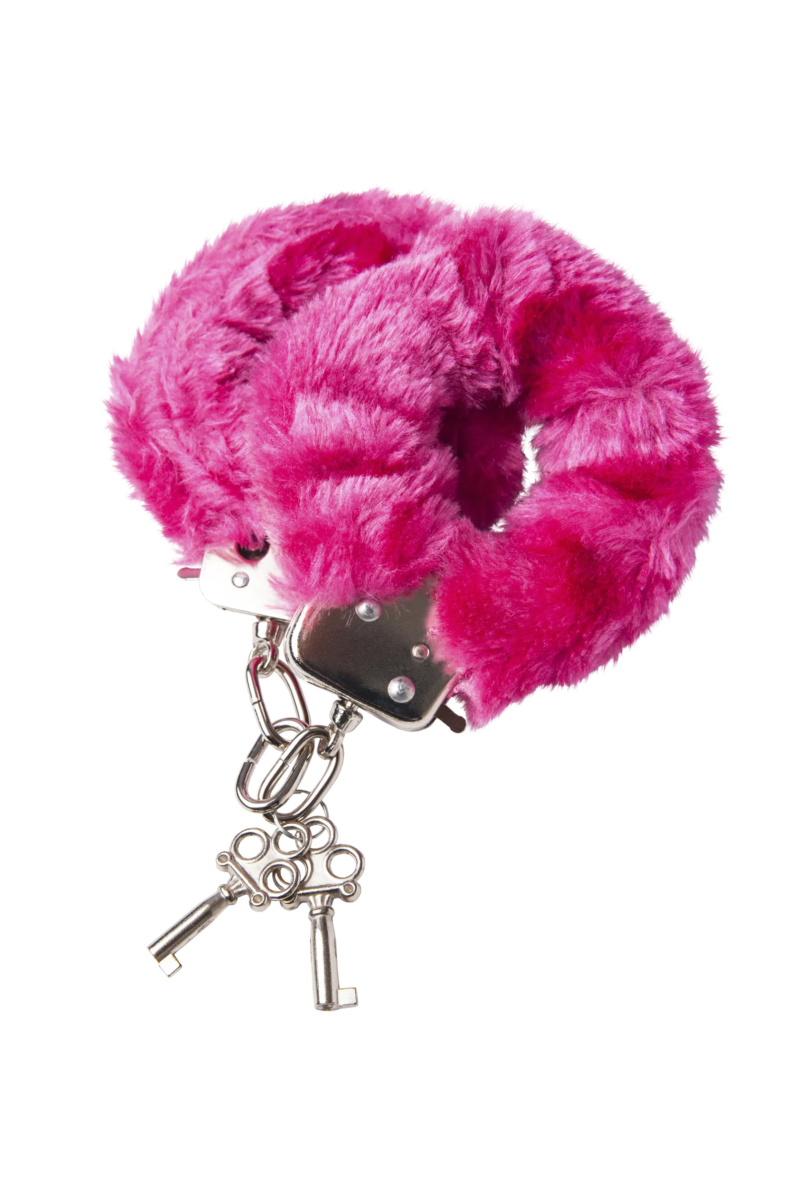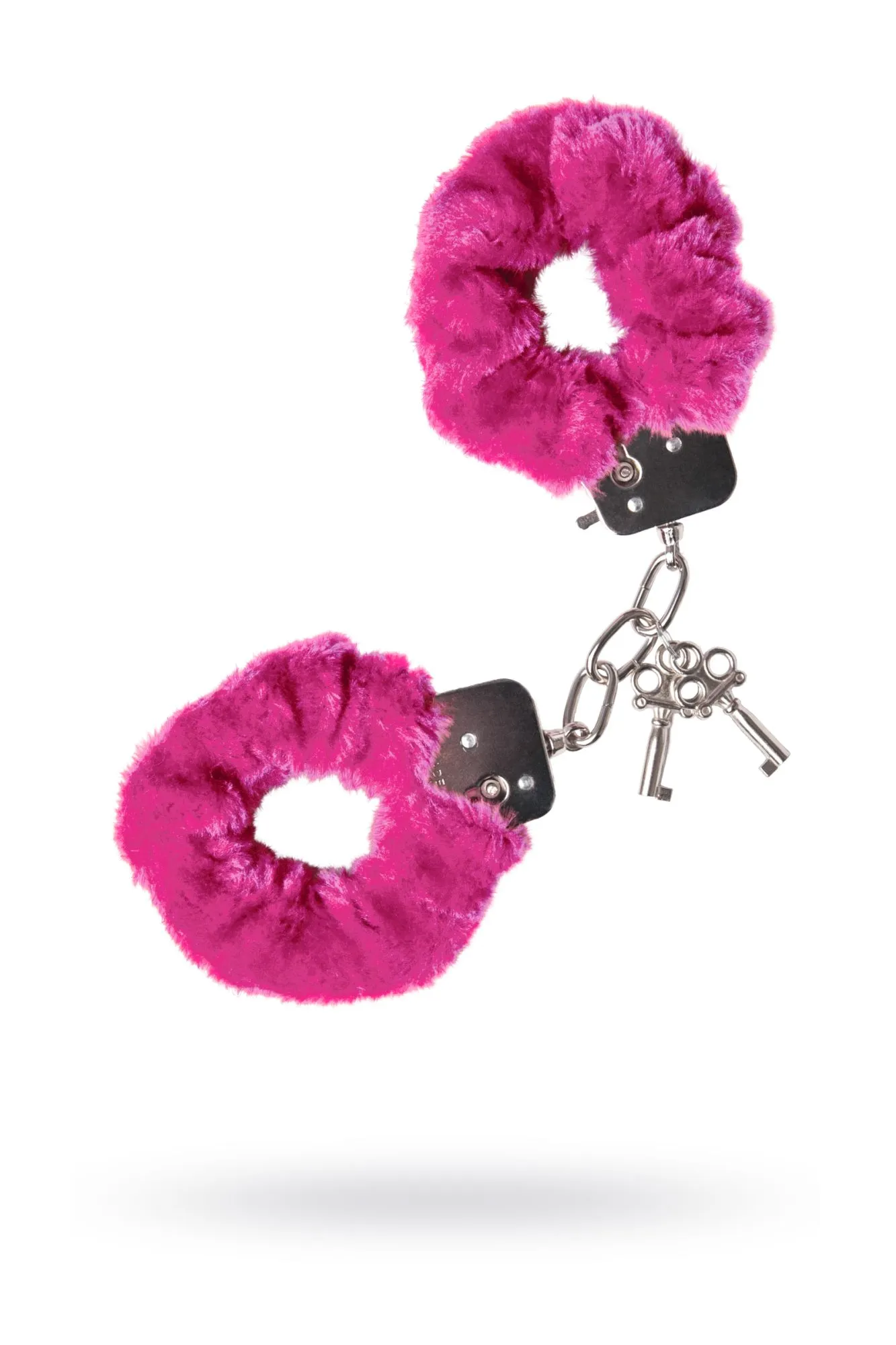 Наручники с металлическим основанием, декорированные розовым искусственным мехом. С 2 ключами в комплекте. Регулируемый механизм позволяет сковывать как женские, так и мужские руки. На случай утери ключей или необходимости быстрого освобождения, предусмотрен рычажок быстрого открытия.