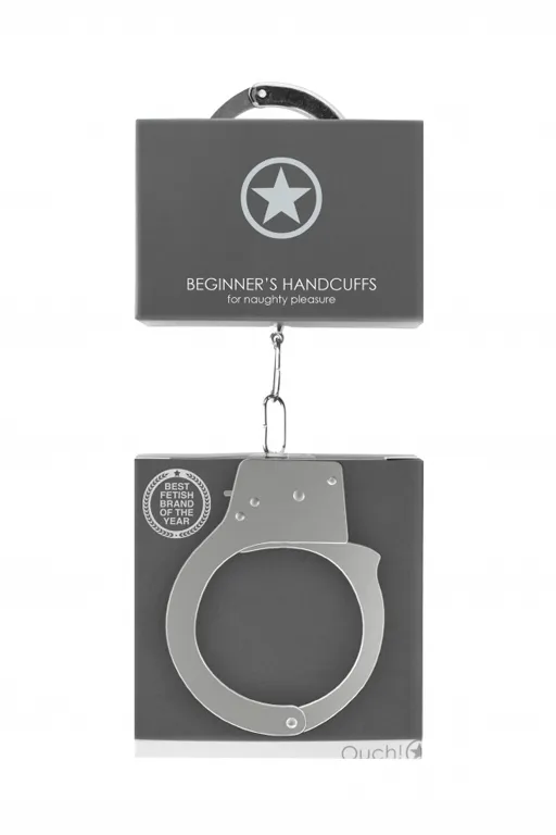 Металлические наручники Beginner's Handcuffs - специализированное приспособление для жесткой и надежной фиксации и обездвиживания партнера при эротических ролевых играх и практиках БДСМ. Классические металлические наручники могут открываться как при помощи ключей, входящих в комплект, так и с помощью механизма непосредственно на них. Кольца соединены между собой короткой неэластичной сцепкой.