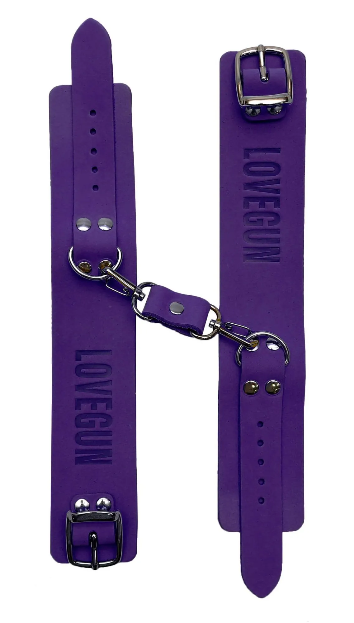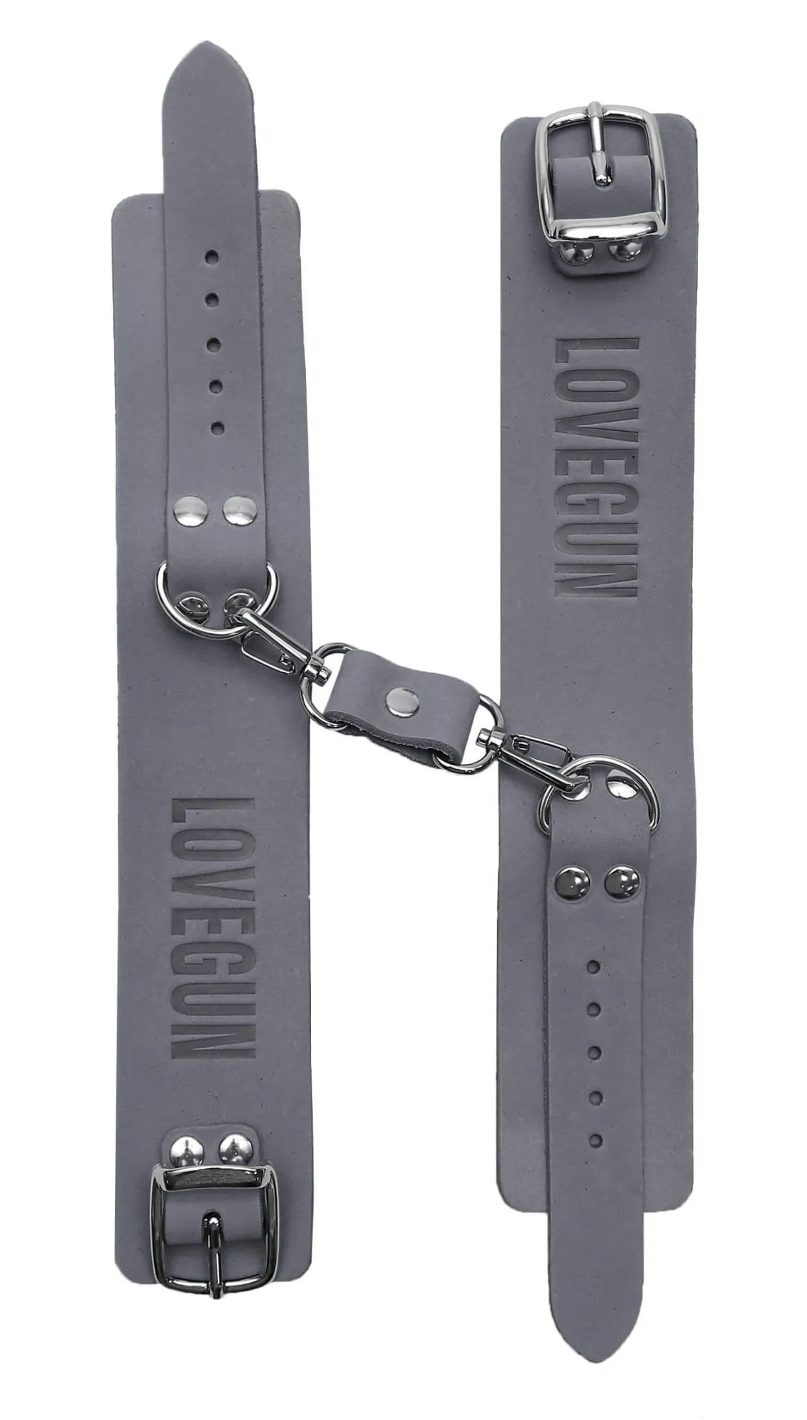 Эти кожаные наручники – эксклюзивная модель в нашем магазине. Между собой кольца, ширина которых составляет 4 см, соединены с помощью металлических карабинов. Данный девайс не имеет подкладки, но, несмотря на это, он очень удобен в использовании, и во время применения таких оков исключен любой дискомфорт. Регулировать диаметр колец можно с помощью ремешков. Эти наручники отлично разнообразят интимные отношения, а также подойдут для БДСМ-развлечений.