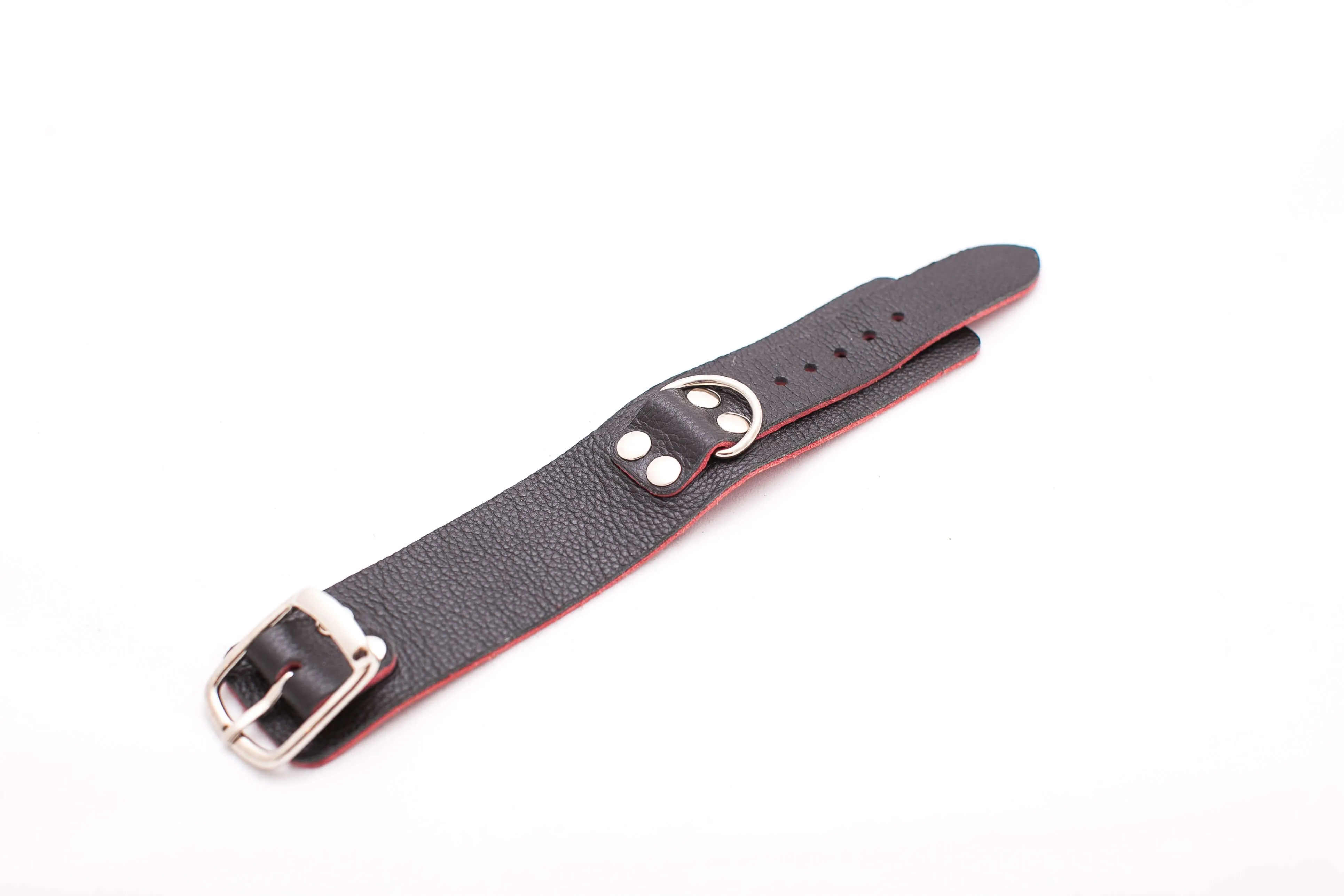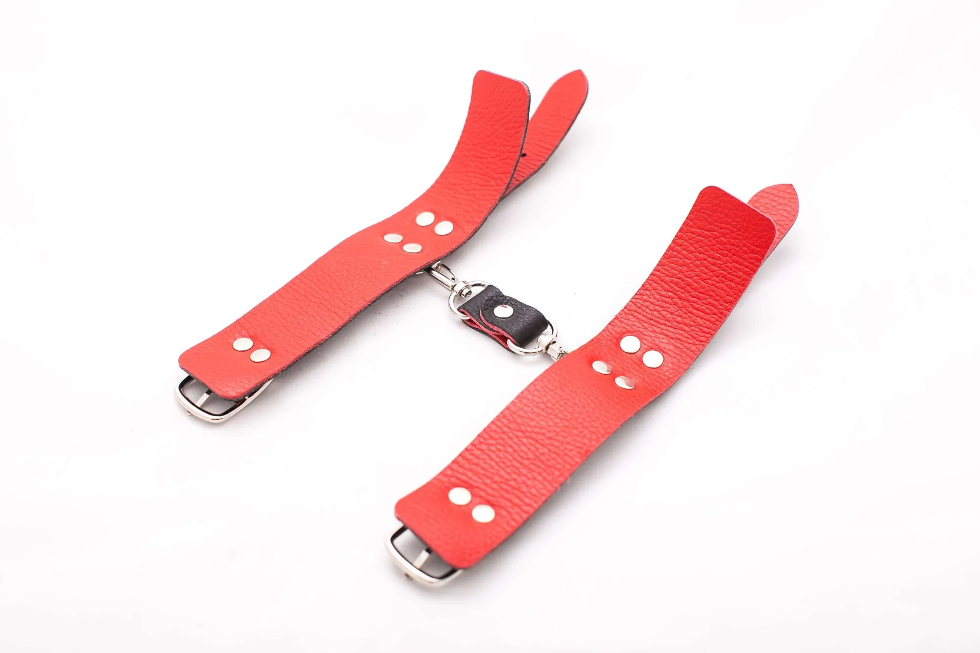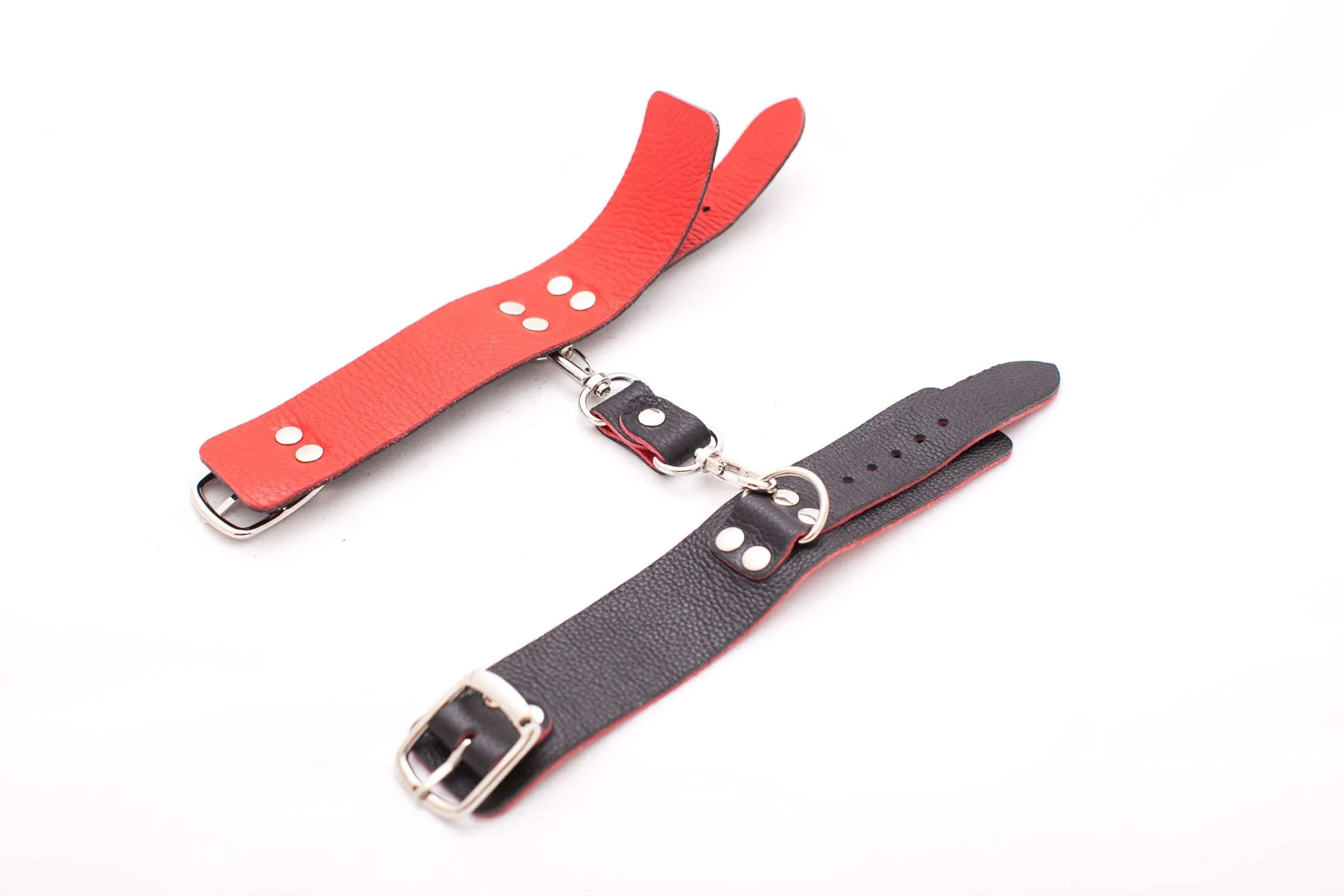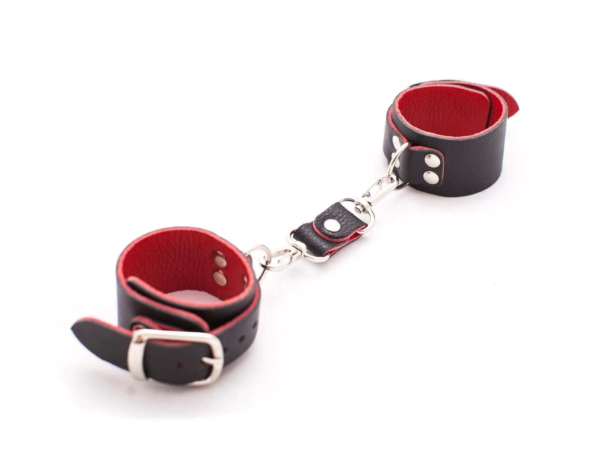 Эти черно-красные кожаные наручники – эксклюзивная модель в нашем мультибрендовом магазине. Ширина наручников составляет 4 см, соединены, с помощью металлических карабинов. Данный девайс не имеет подкладки, но, несмотря на это, он очень удобен в использовании и во время применения таких оков исключен любой дискомфорт. Регулировать диаметр колец можно с помощью ремешков. Эти наручники отлично разнообразят интимные отношения, а также подойдут для БДСМ-развлечений.