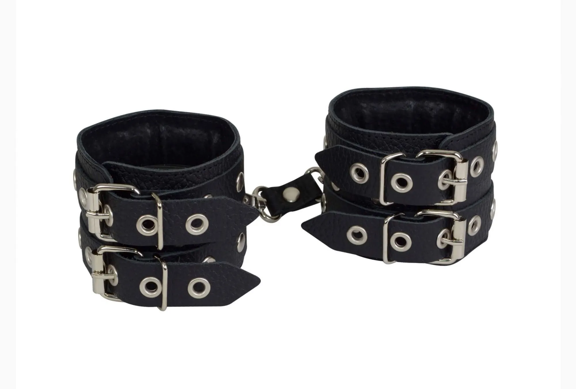 Наручники от бренда Sitabella выполнены из натуральной кожи и декорированы металлическими клепками. Подкладка сделана из велюра, благодаря чему наручники будут мягко касаться кожи не доставят дискомфорта. Данная модель подойдет мужчинам и женщинам, также ее можно регулировать по размеру при помощи пряжек.