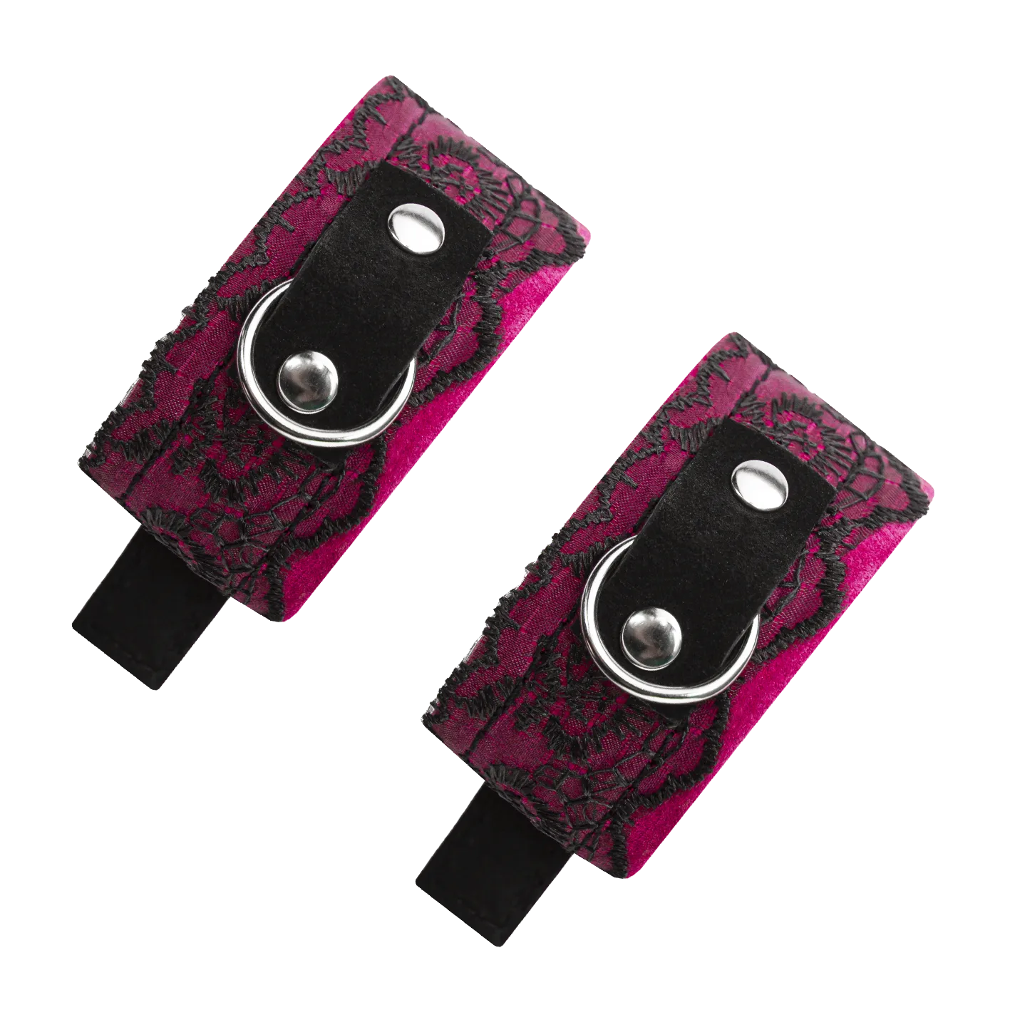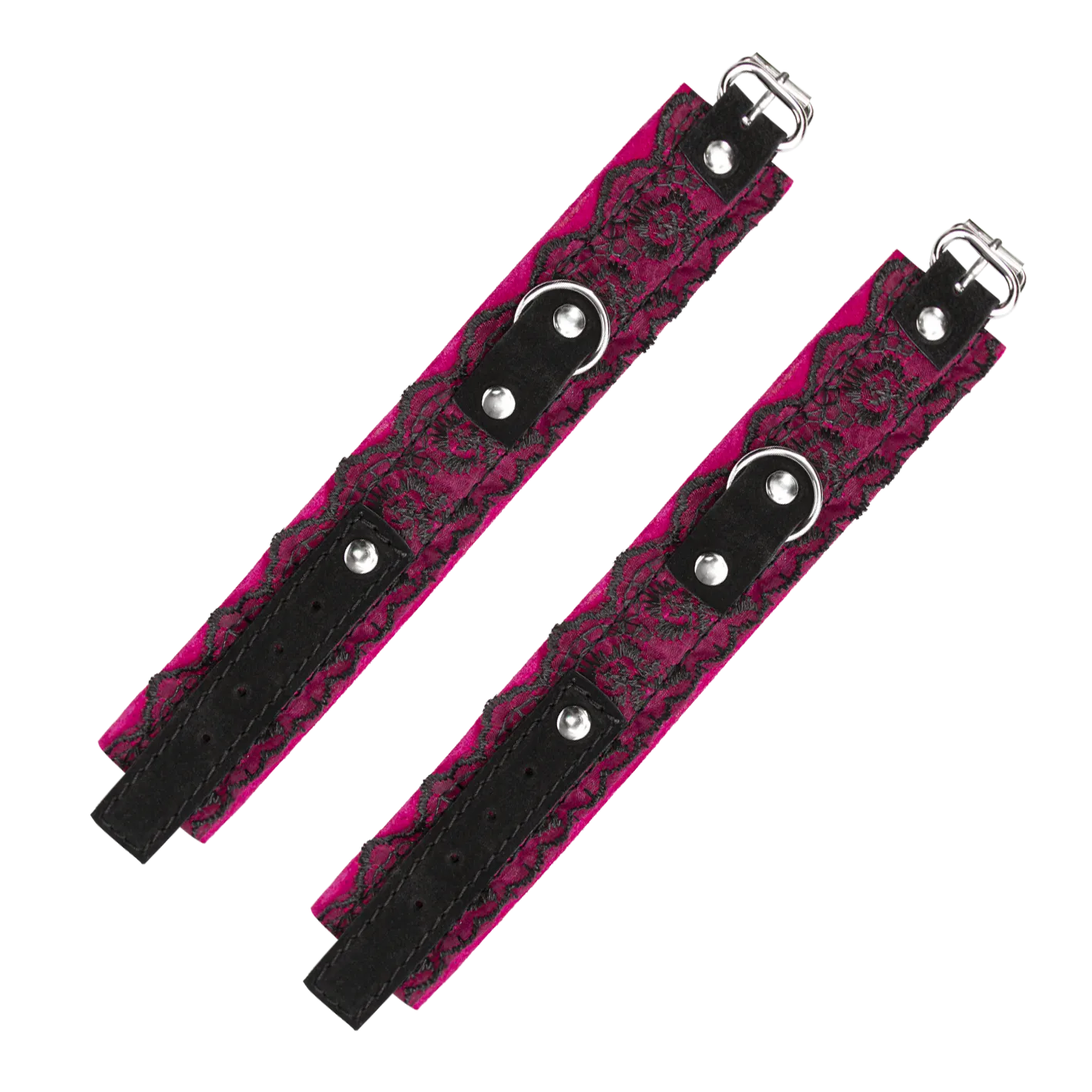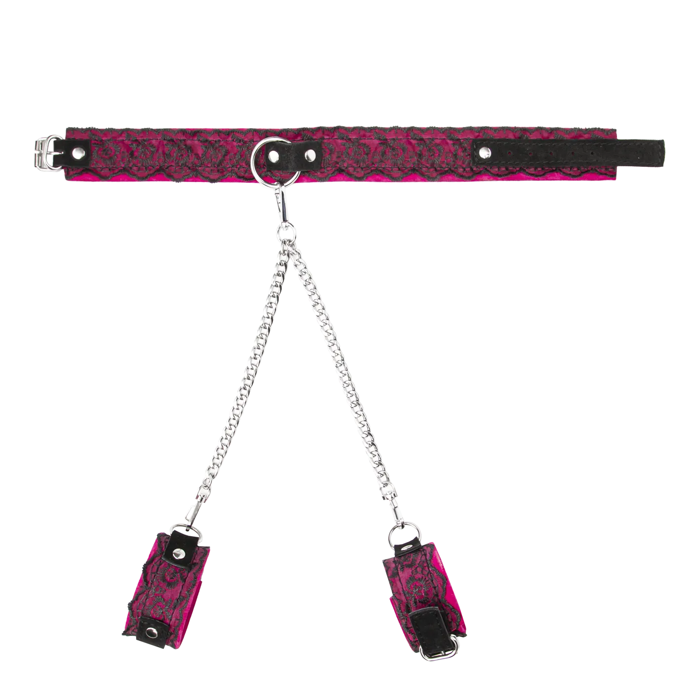 Комплект наручники с ошейником из замши с кружевом, фуксия