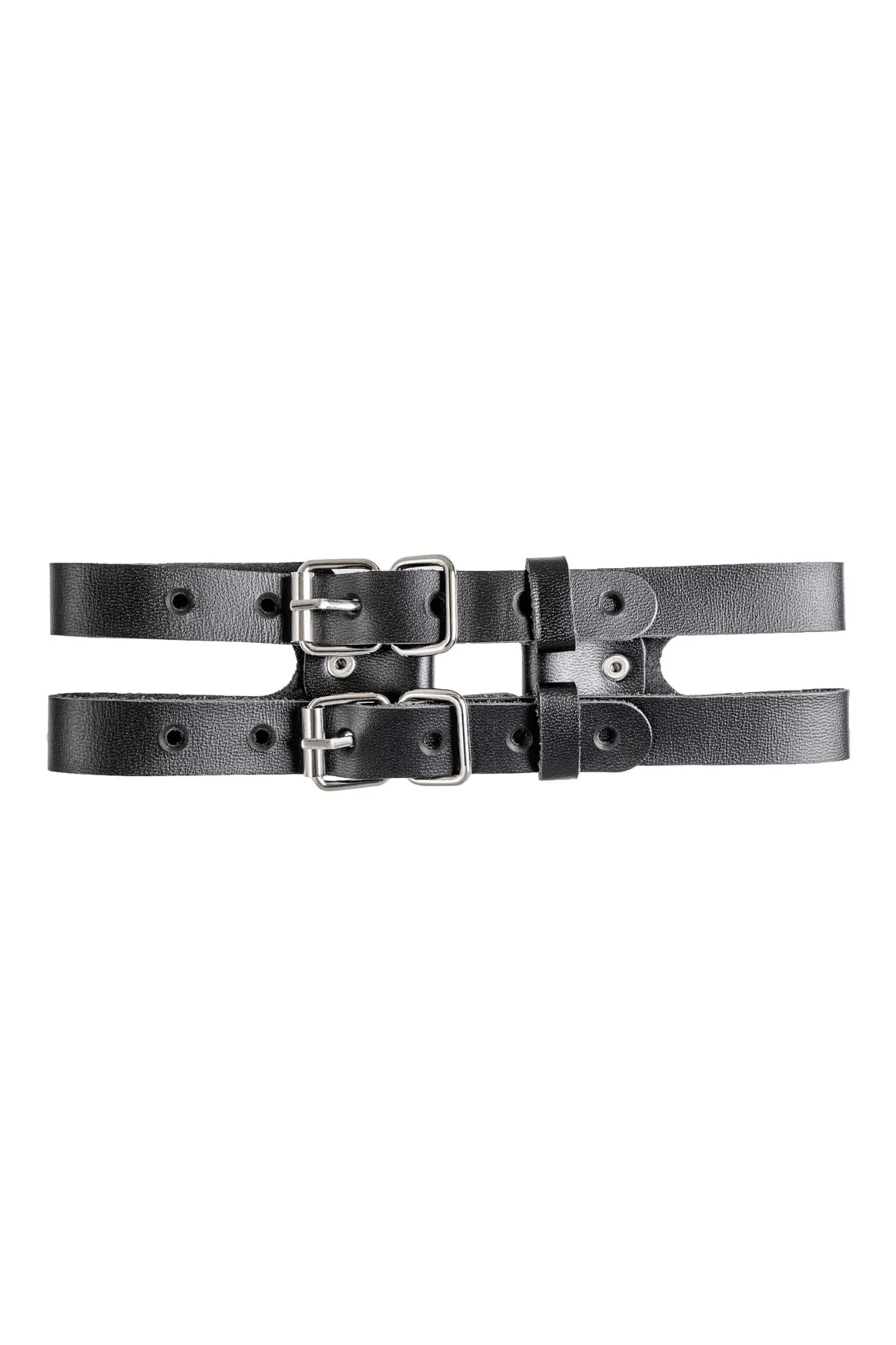 Чокер-ошейник Pecado BDSM, из двух ремешков, натуральная кожа, чёрный