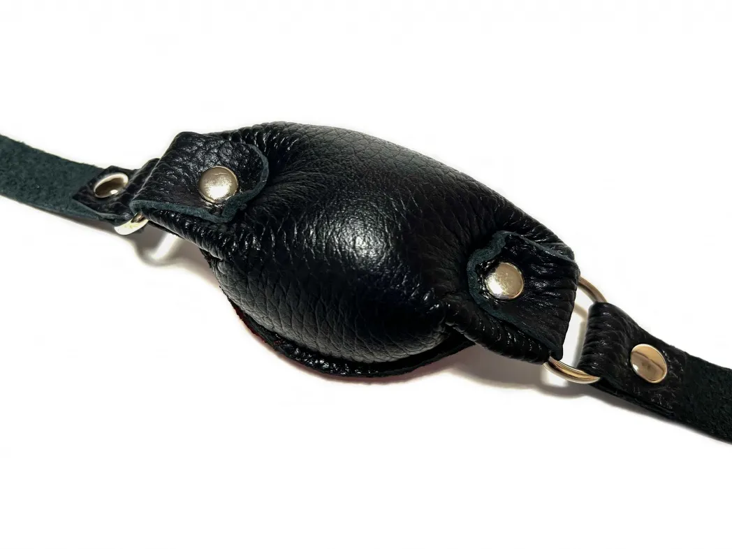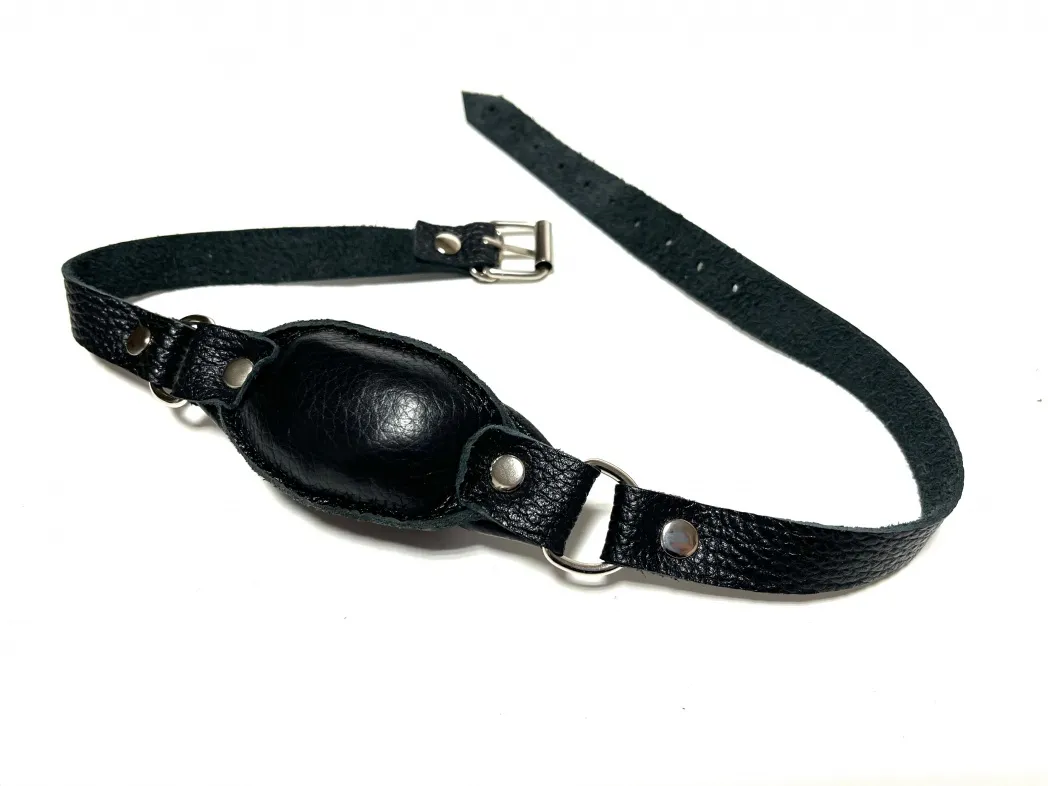 Качественный и удобный кляп, выполненный из натуральной кожи черного цвета. Размеры кляпа 9 х 5см, благодаря наполнителю средней жесткости этот кляп будет комфортен в использовнии. Аксессуар декорирован сварной металлической фурнитурой. Ширина ремешков 1,8см, обхват удобно регулируется с помощью металлической пряжки. Отличный аксессуар для любовной игры и новых ощущений! Материал: натуральная кожа, металл Цвет: черный