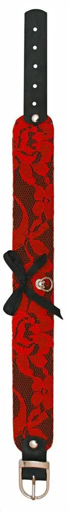 Этот изысканный чокер от бренда Fetfox Studio выполнен из черной кожи и украшен тонким красным кружевом с цветочным мотивом и пикантным бантиком. Благодаря его особому дизайну он станет великолепным украшением, которое подчеркнет Ваш индивидуальный стиль и акцентирует внимание на прекрасной шейке. Также он сможет послужить Вам во время ролевых игр с элементами БДСМ, ведь благодаря небольшому металлическому кольцу к нему можно присоединить поводок или другие аксессуары. Это заметно разнообразит Ваши любовные игры и позволит испытать новые будоражащие ощущения.