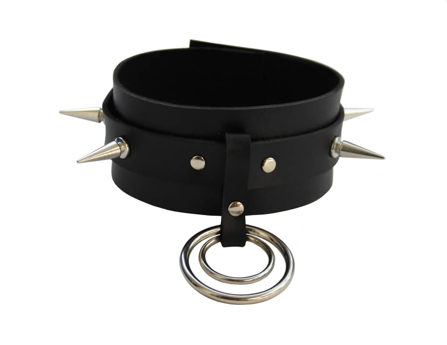 Ошейник PinkRabbit с шипами и кольцами, чёрный