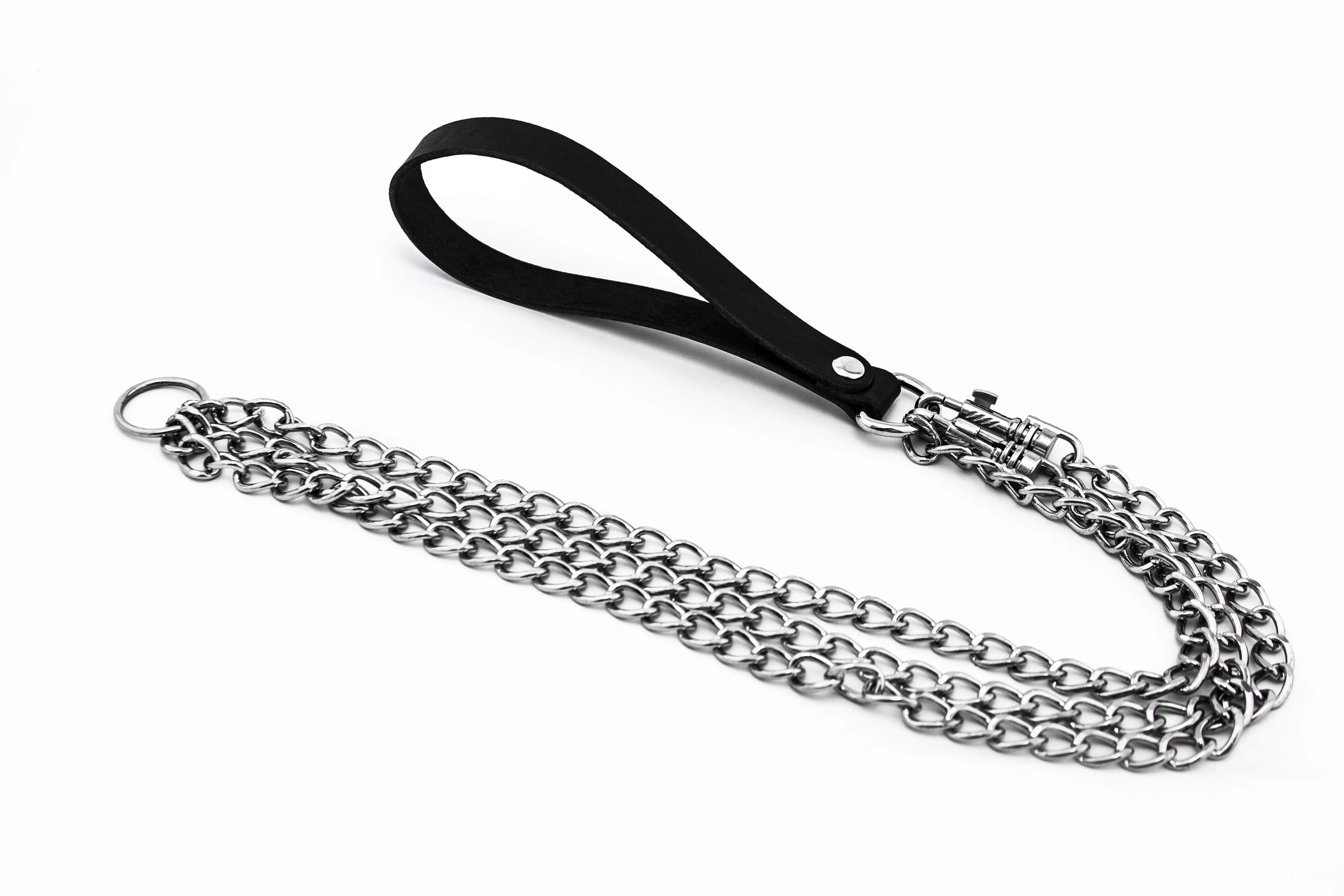 Поводок - это аксессуар для игр с элементами БДСМ, благодаря которому Вы всегда будете иметь полный контроль над своим партнером. У поводка есть петелька для запястья, выполненная из натуральной кожи, а также два карабина, при помощи которого к поводку можно присоединить ошейник или другие аксессуары. При помощи такого аксессуара можно будет ограничить движения партнера, не позволяя ему отходить от Вас далеко, одергивать его при непослушании или направлять в нужную сторону.