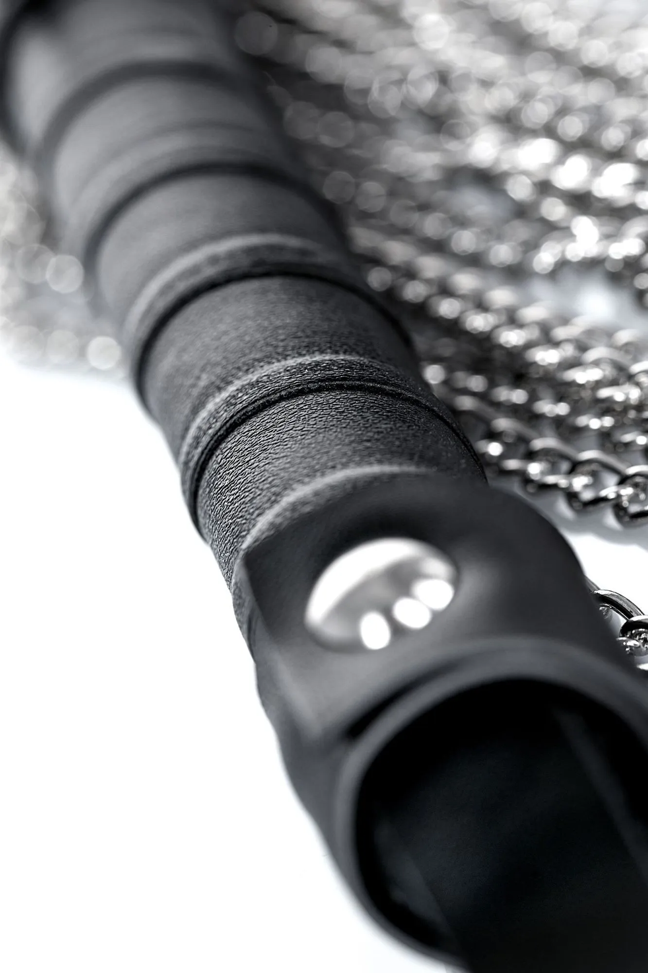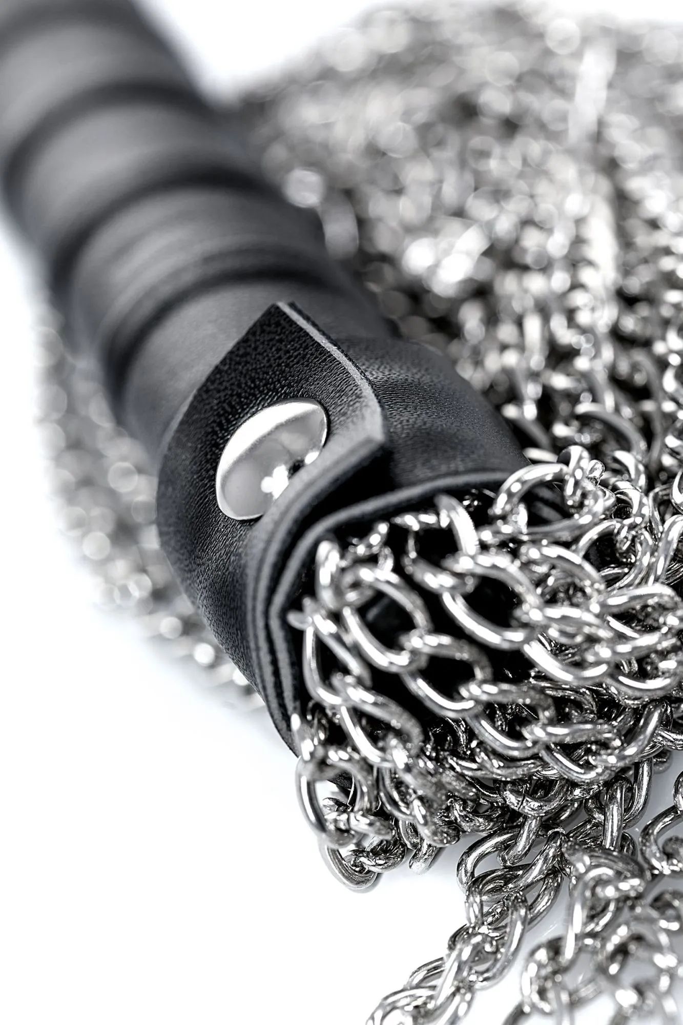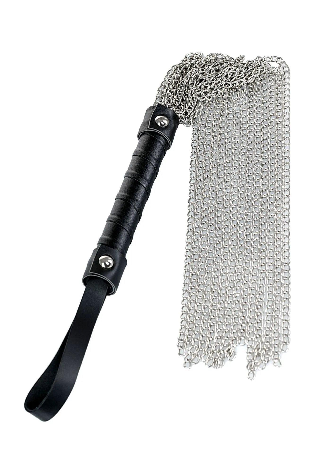 Потрясающий по воздействию и созданию антуража флоггер! Хвосты из серебристых цепочек в умелых руках могут и разогревать и холодить и наказывать.