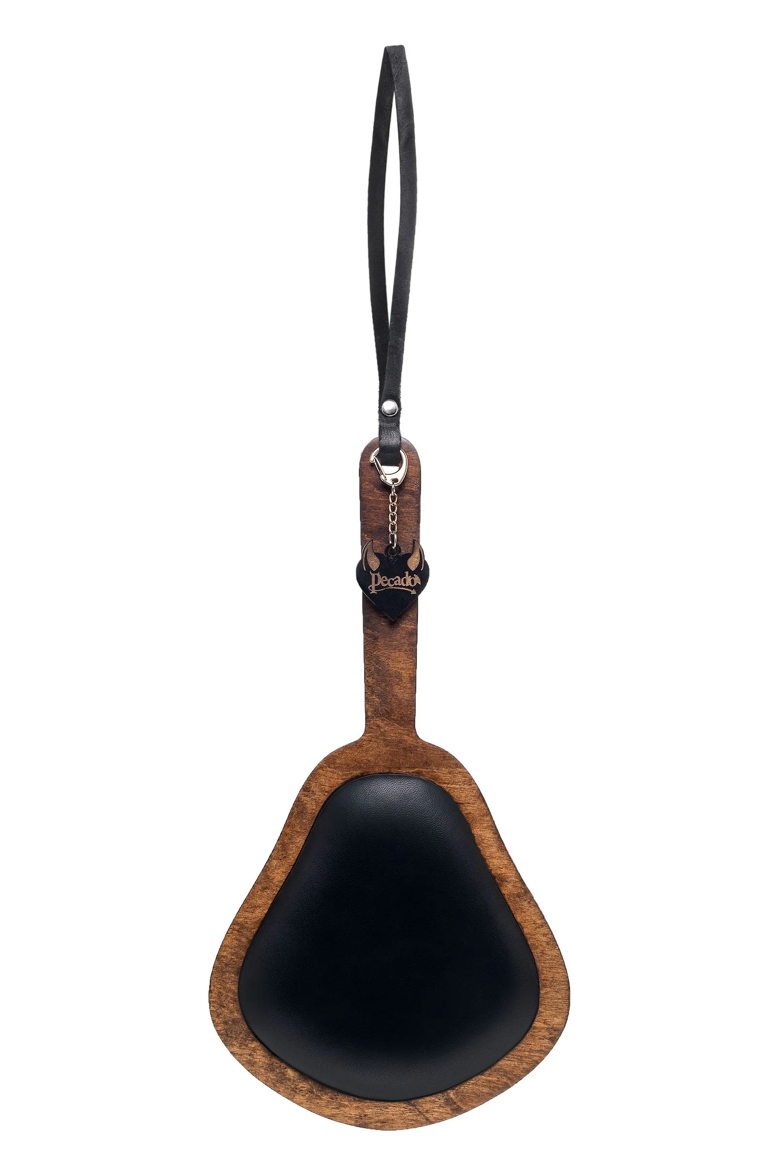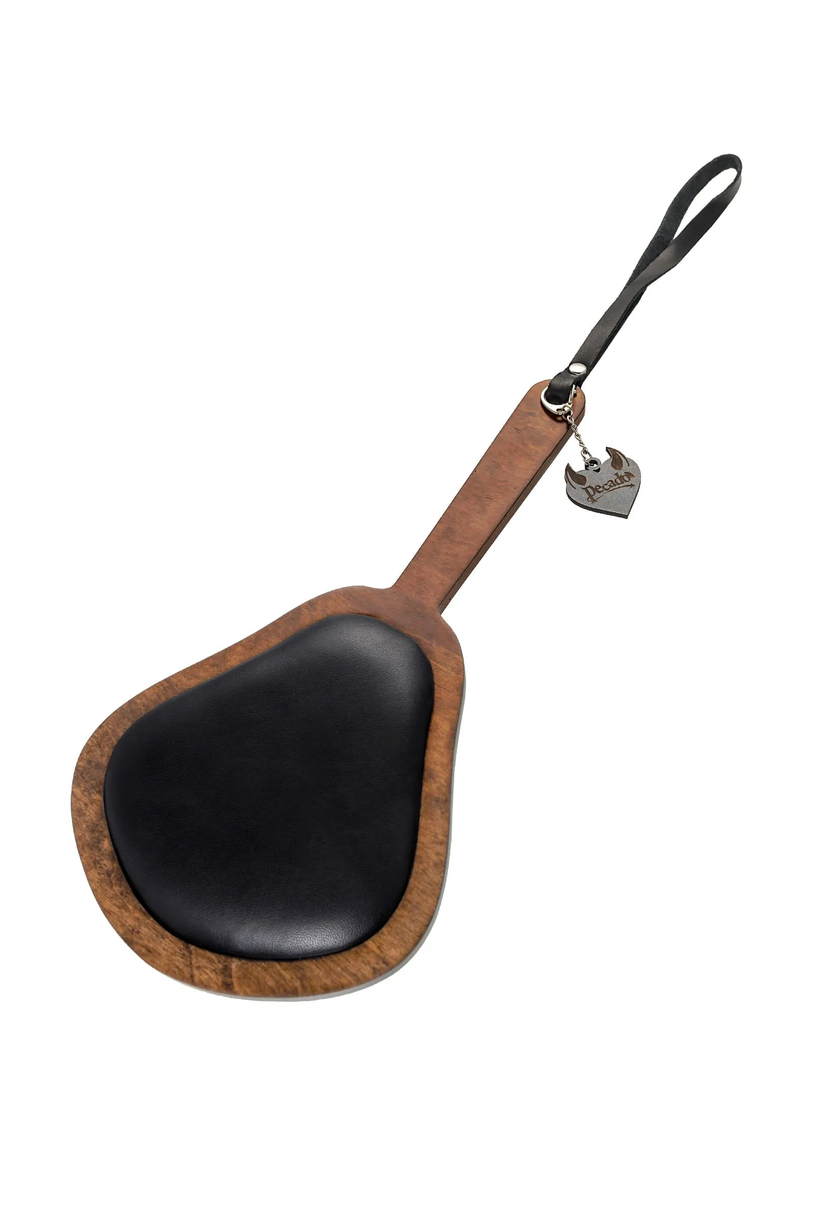 —Паддл Pecado BDSM, большой с мягкой подушечкой, натуральная кожа и дерево, чёрный