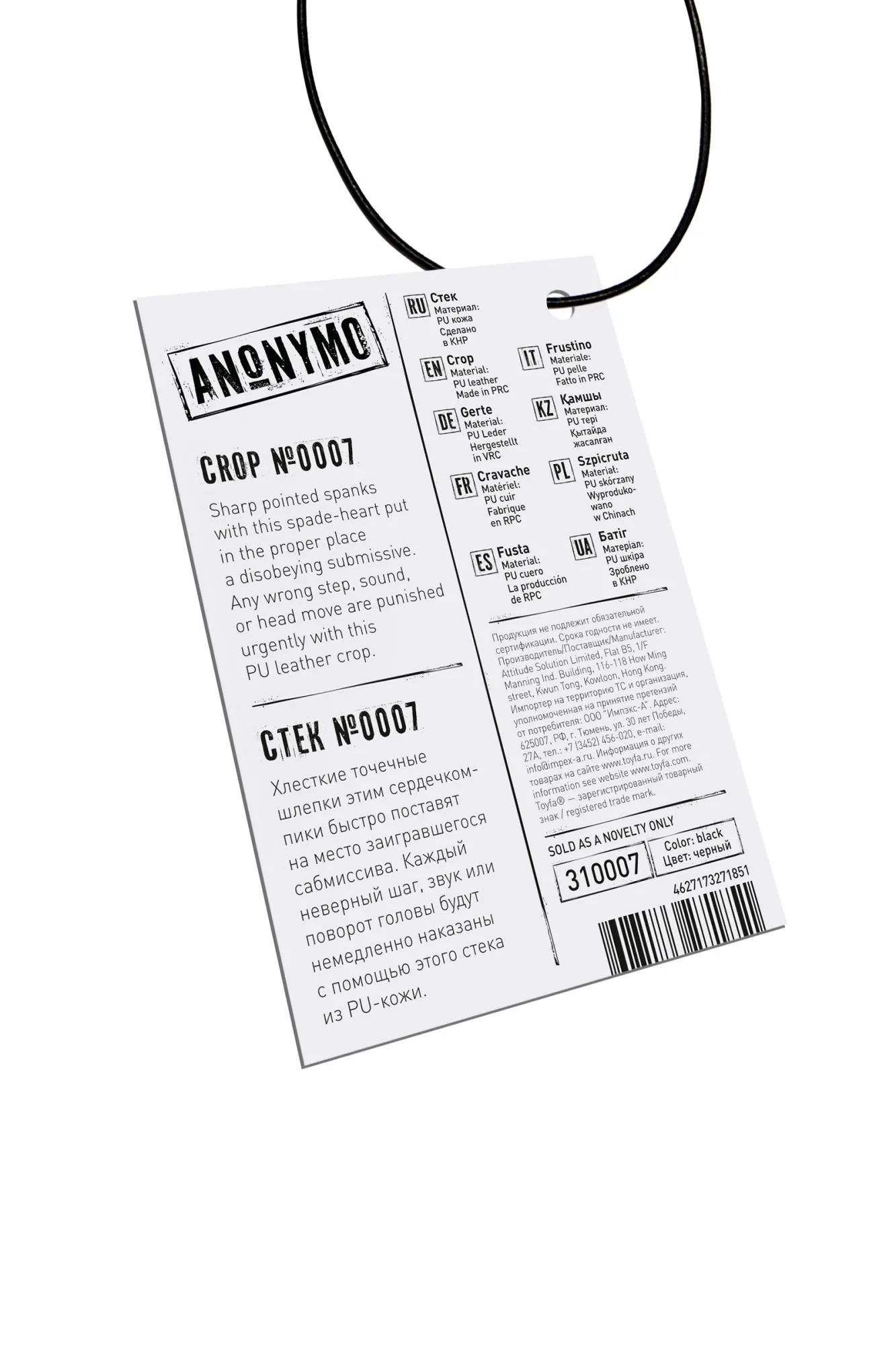 Стек Anonymo #0007, PU кожа, черный, 36 см