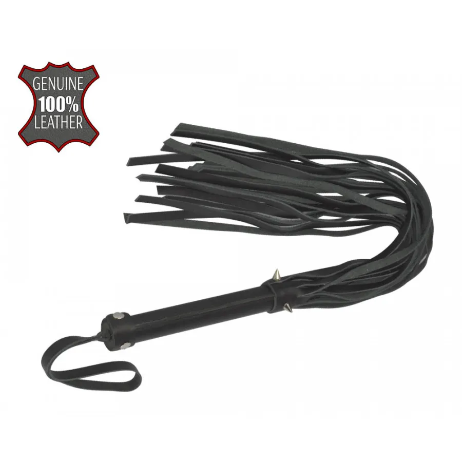 Плеть изготовлена из натуральной кожи и украшена тремя металлическими  шипами.  Общая длина плети - 55 см.